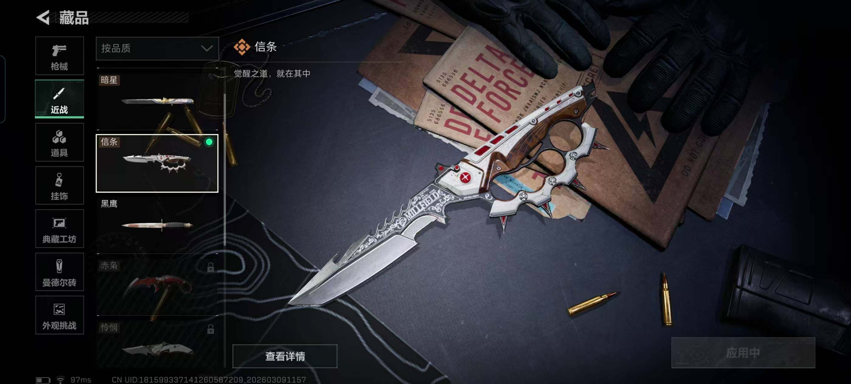 【近战皮肤】:近战-暗星,近战-信条,近战-处刑者4级,近战-黑鹰