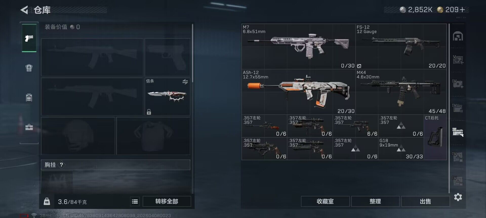 【SJZG4734】总资产(M):156M/哈夫币(K):2852K/哈夫币(