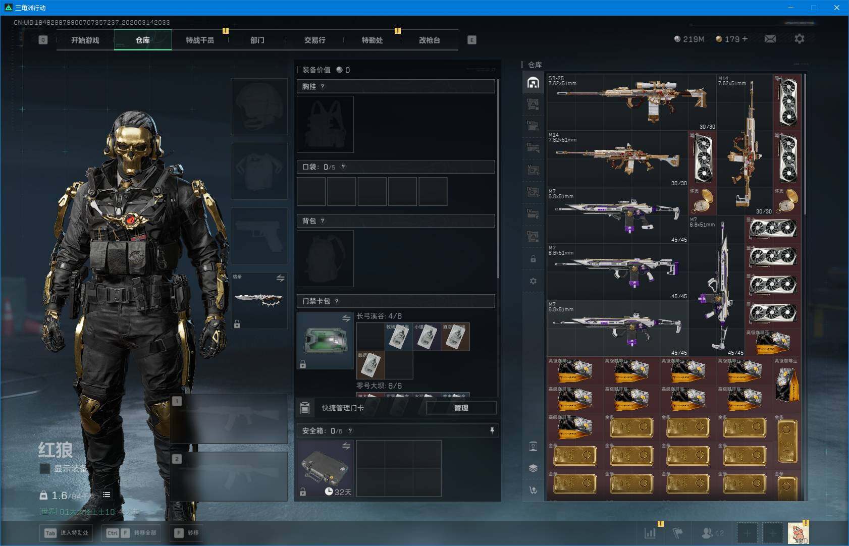 【SJZF6552】总资产(M):493M/哈夫币(K):219963K/哈夫币(K):219963K/传说枪皮数:26/全面战场等级:8_段位:列兵/烽火地带等级:60_段位:钻石/红狼-蚀金玫瑰/骇爪-维什戴尔/红狼-电锯惊魂/露娜-金牌射手/乌鲁鲁-荒原猎手/近战-暗星/近战-信条/近战-电锯惊魂/近战-黑鹰/M4A1突击步枪-蚀金玫瑰/AUG突击步枪-悠然茶歇/SG552突击步枪-运动员