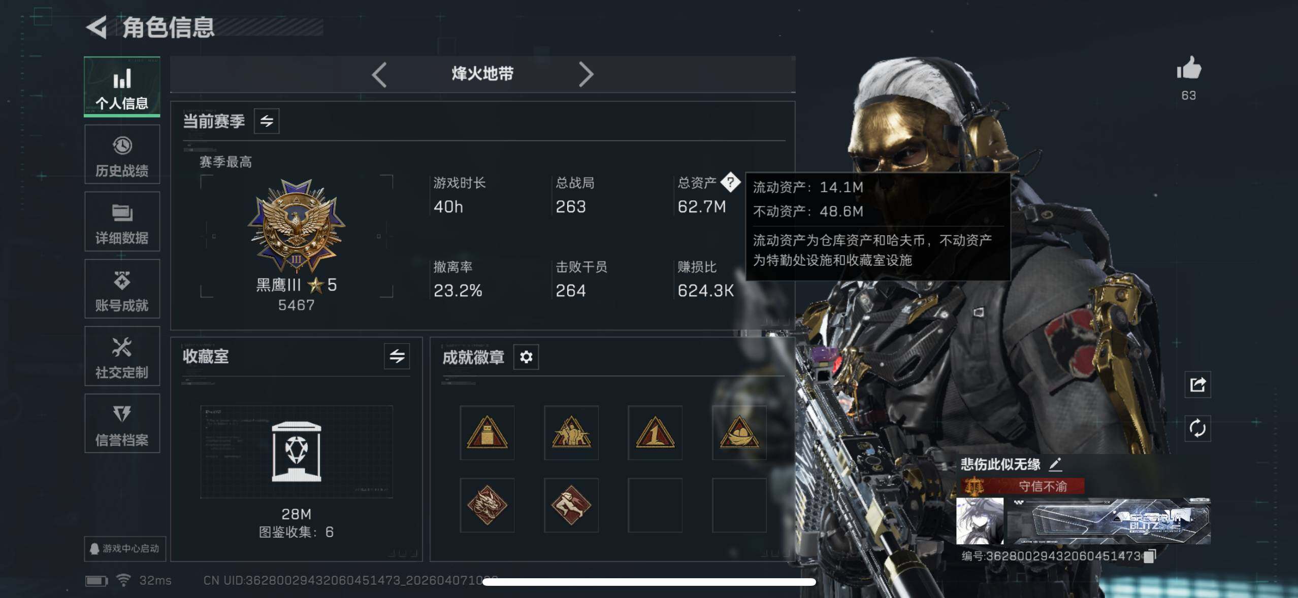 【SJZQH1680】总资产(M):62M/哈夫币(K):15K/哈夫币(K)
