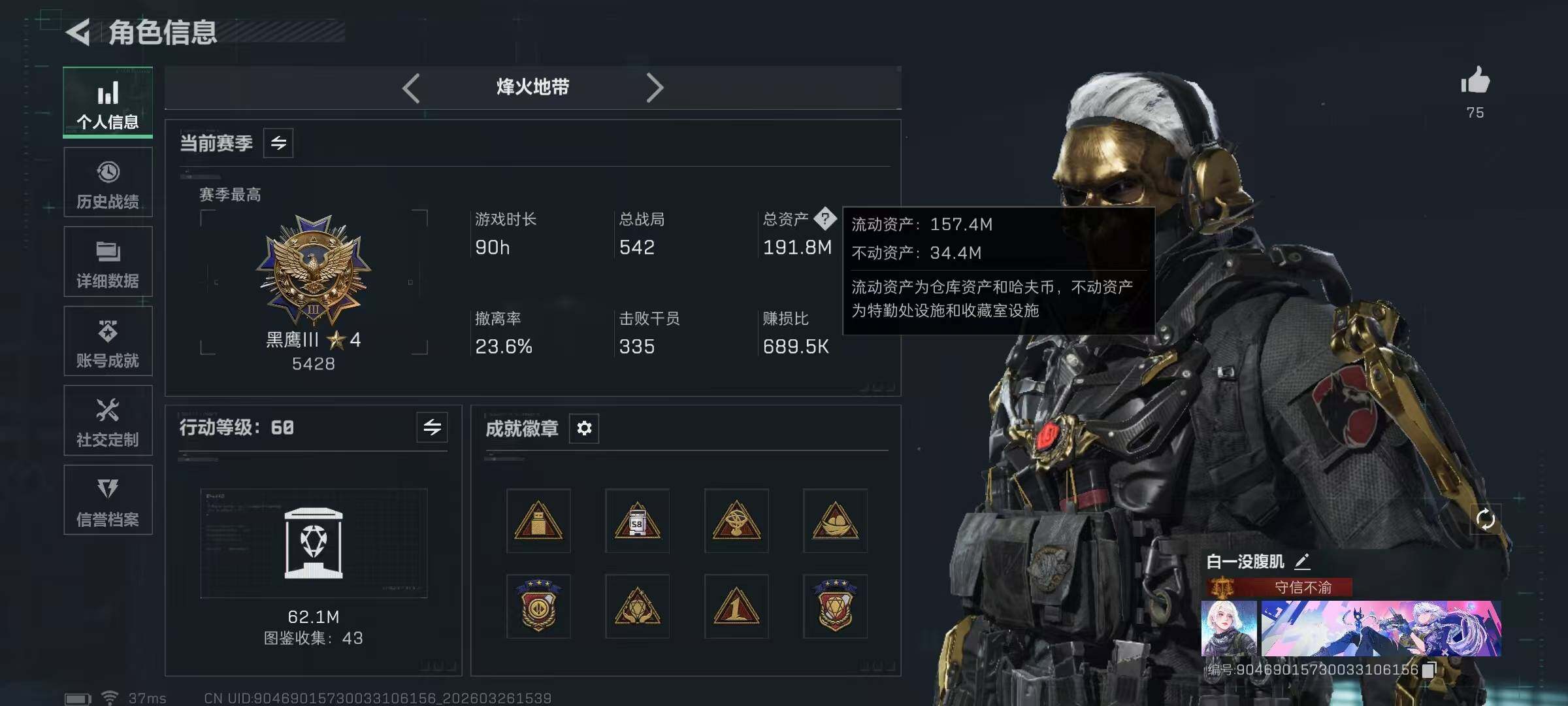【SJZYT751】总资产(M):191M/哈夫币(K):269K/哈夫币(K