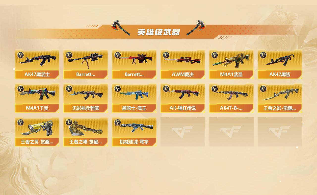 【CY66】四川二区-64V-5王者武器数-7炫金武器数【热门武器】:QBZ