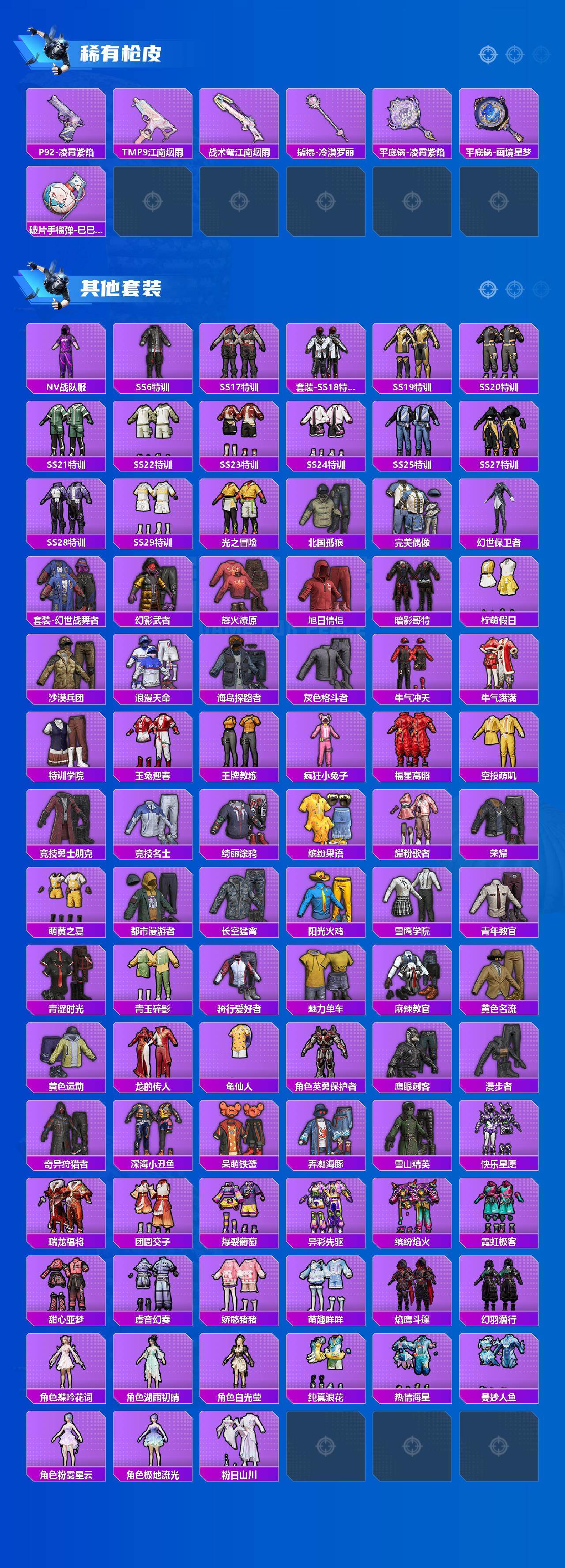 【粉色套装】:粉装-星之彼岸,角色-复仇流浪者,粉装-金丰海韵,角色-女娲灵识,粉装-幻彩电音,角色-镜中幻