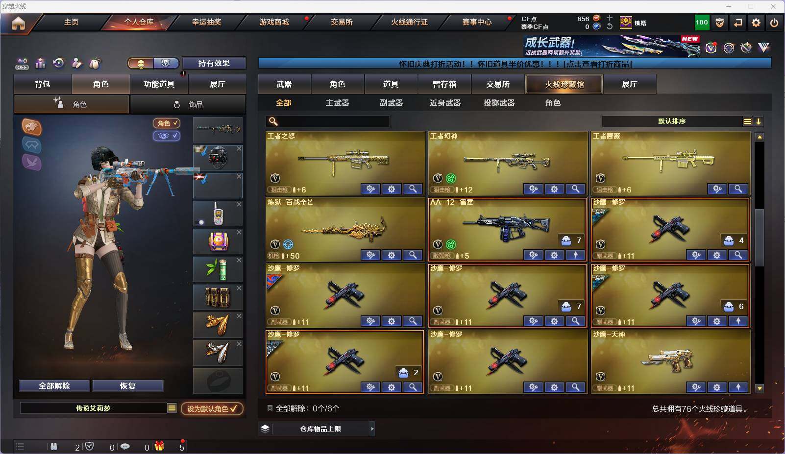【CFX947】61V/101级/大元首/15王者/3炫金/2英雄/幻神三件套/白虎三件套/QBZ三件套/星神三件套/传说艾莉莎/QBZ03-金色蔷薇/Scar Light-白虎/M200-幻神/Kar98K-星神/M4A1-黑骑士/羊驼玩偶/COP-白鲨/COP 357-幻灵/沙鹰-修罗/王者岩刺/炫金骑士/炫金雷神/炫金毁灭/M200-幻神音效卡/M4A1-雷神音效卡/Barrett-毁灭音