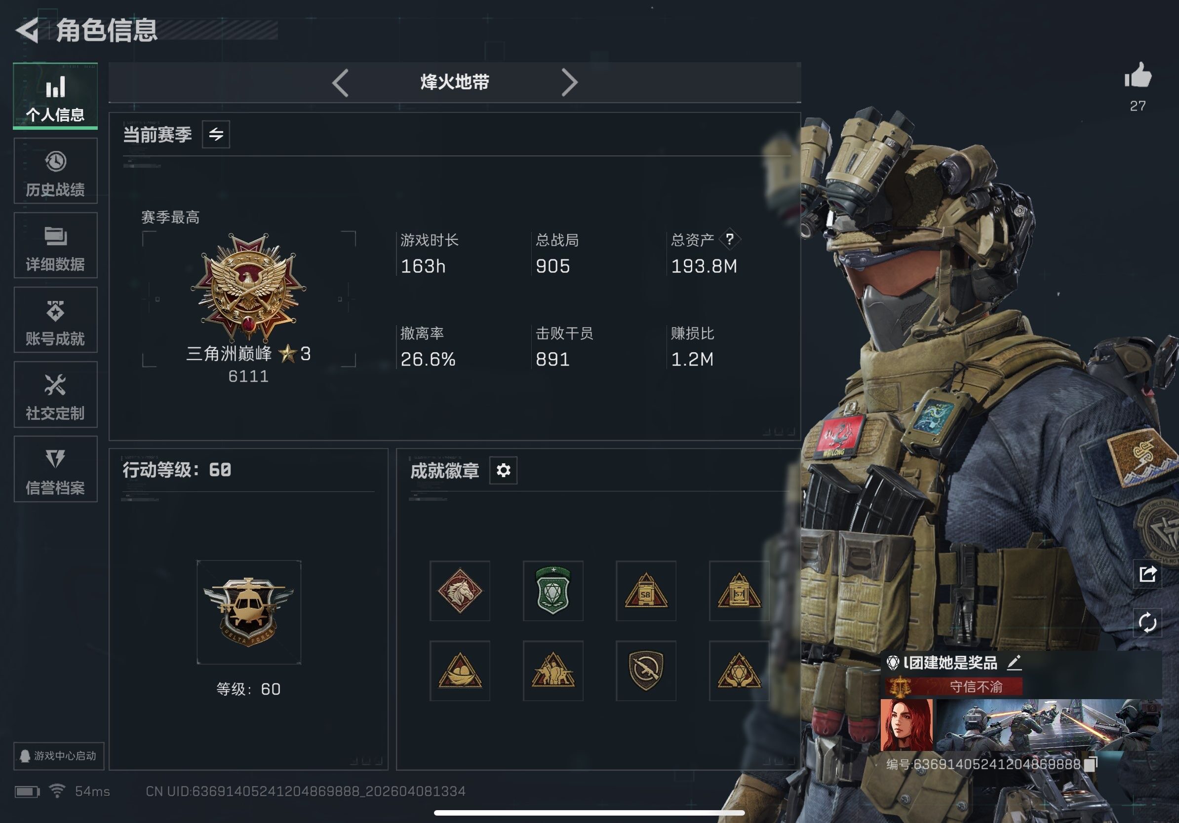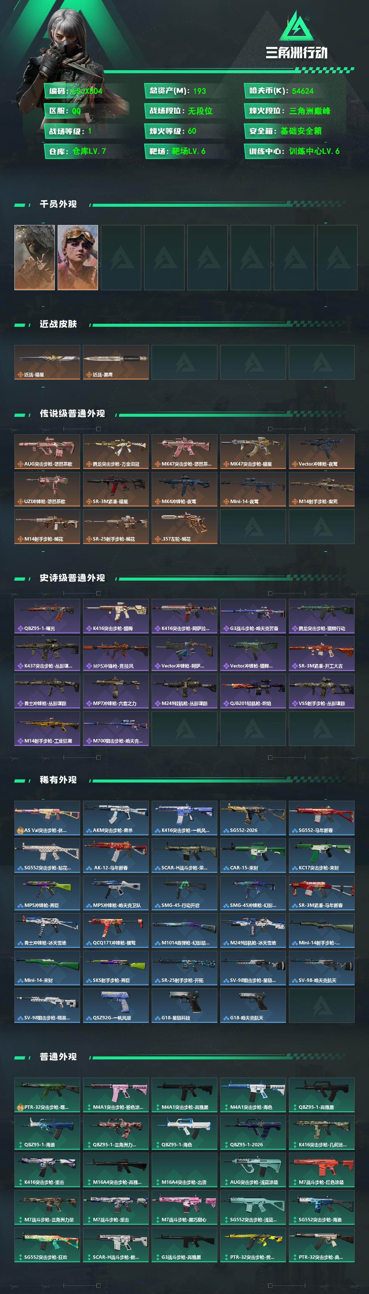 【特价出售/店主推荐】193m总资产-54624k哈夫币-60烽火等级-三角洲巅峰-1战场等级-无军衔