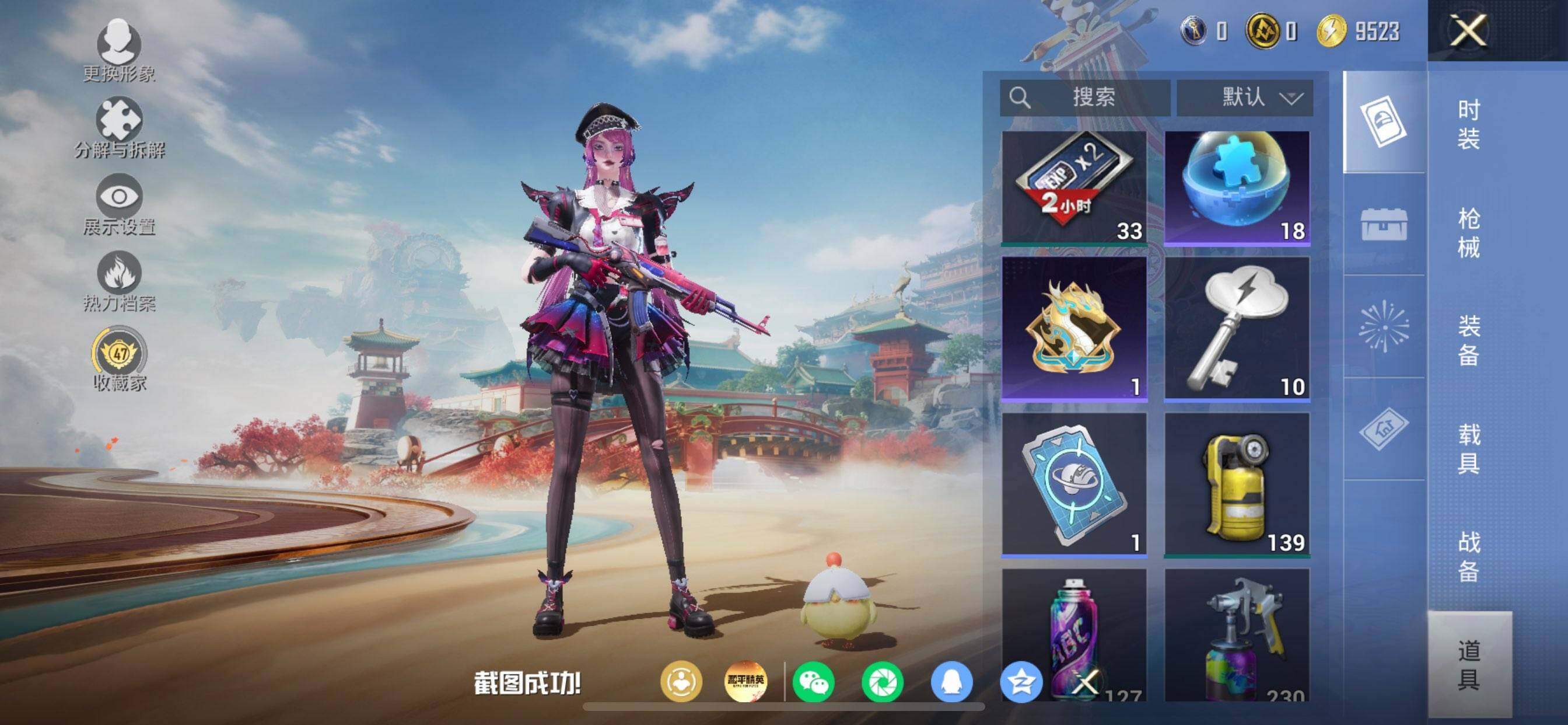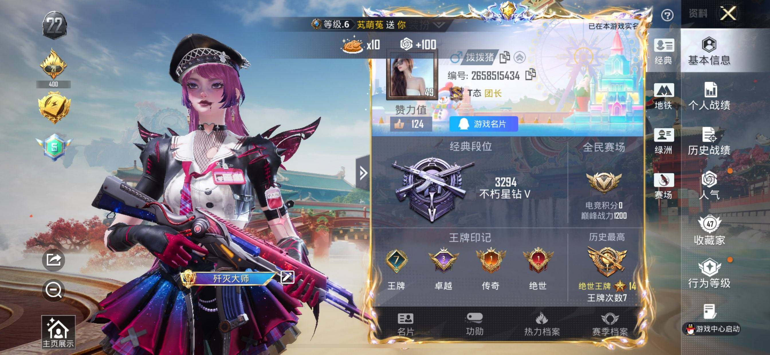 苹果 手Q-1粉装-6特效枪-0载具-1粉色飞行器-33929热力值-7王牌印记-67套装-125枪皮