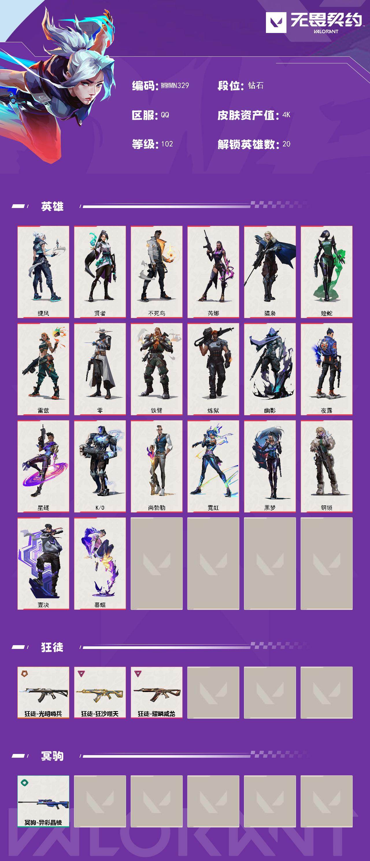 【英雄】:捷风,贤者,不死鸟,芮娜,猎枭,蝰蛇,雷兹,零,铁臂,炼狱,幽影,夜