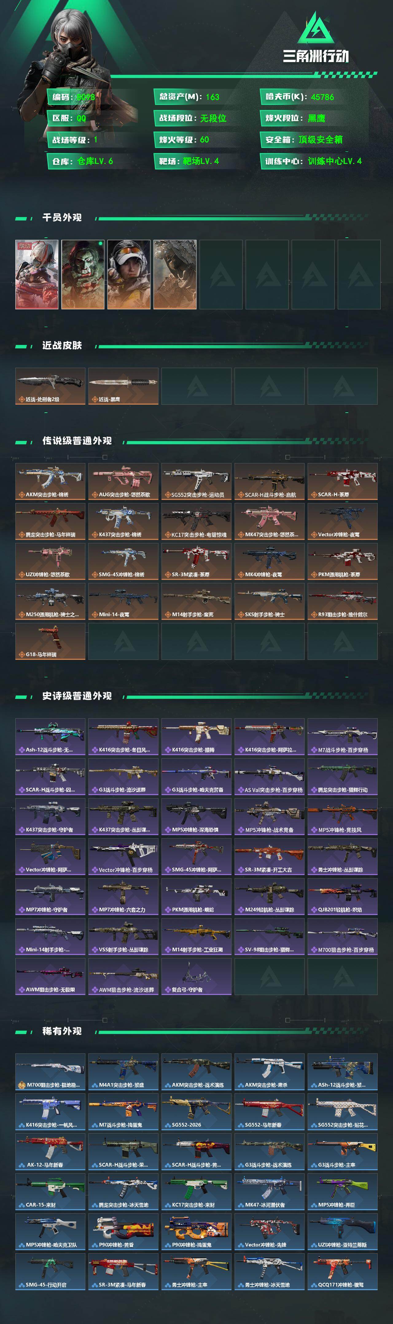 {特价出售}等级: 60 总资产:164M 流动资产:156.9 M 纯币:45786k 红皮: 维什戴尔 战令皮肤:/蛊-不羁人生/乌鲁鲁-荒原猎手/露娜-金牌射手/红狼-电锯惊魂/深蓝-不破誓约 刀皮: 处刑者 特勤处:仓库6,训练4,靶场4