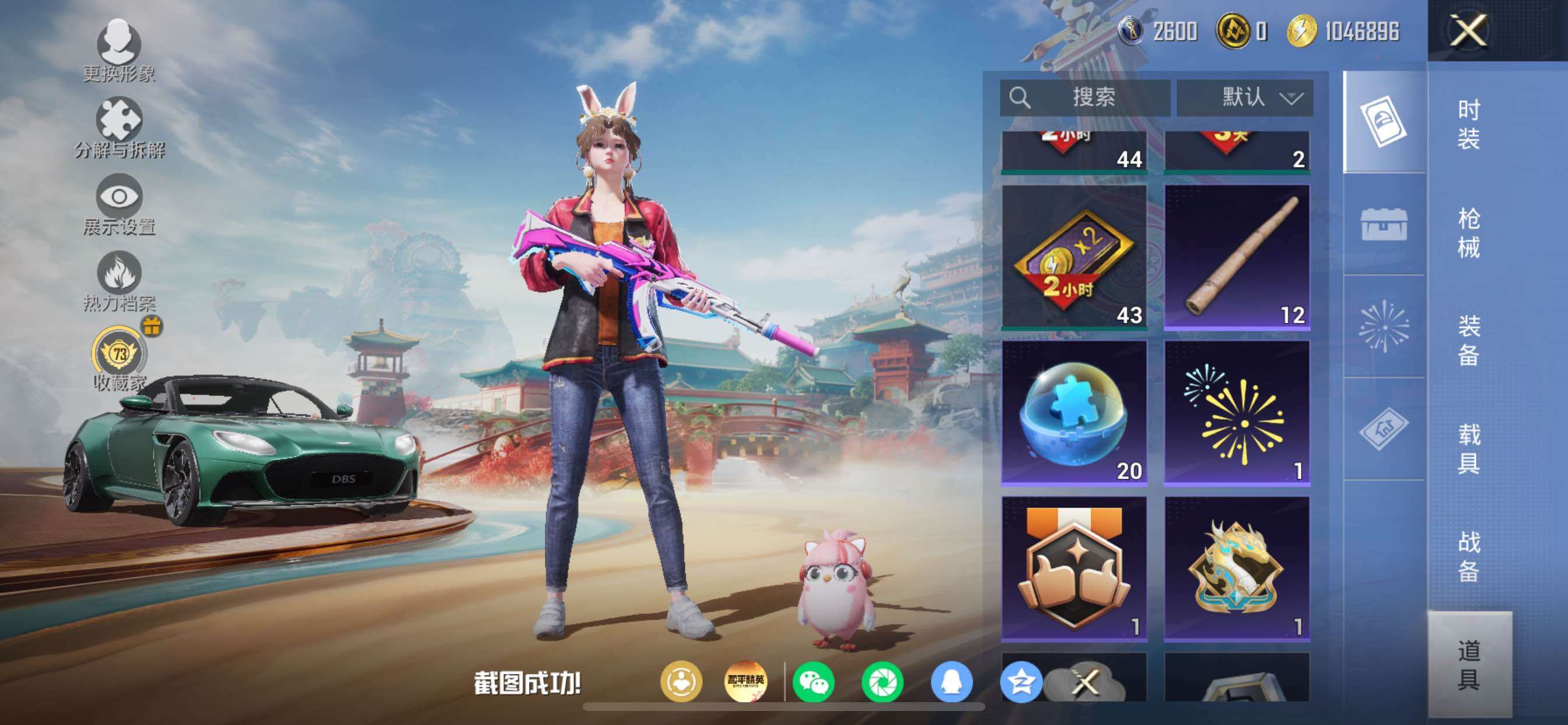 苹果 手Q-11粉装-11特效枪-1载具-1粉色飞行器-86767热力值-15