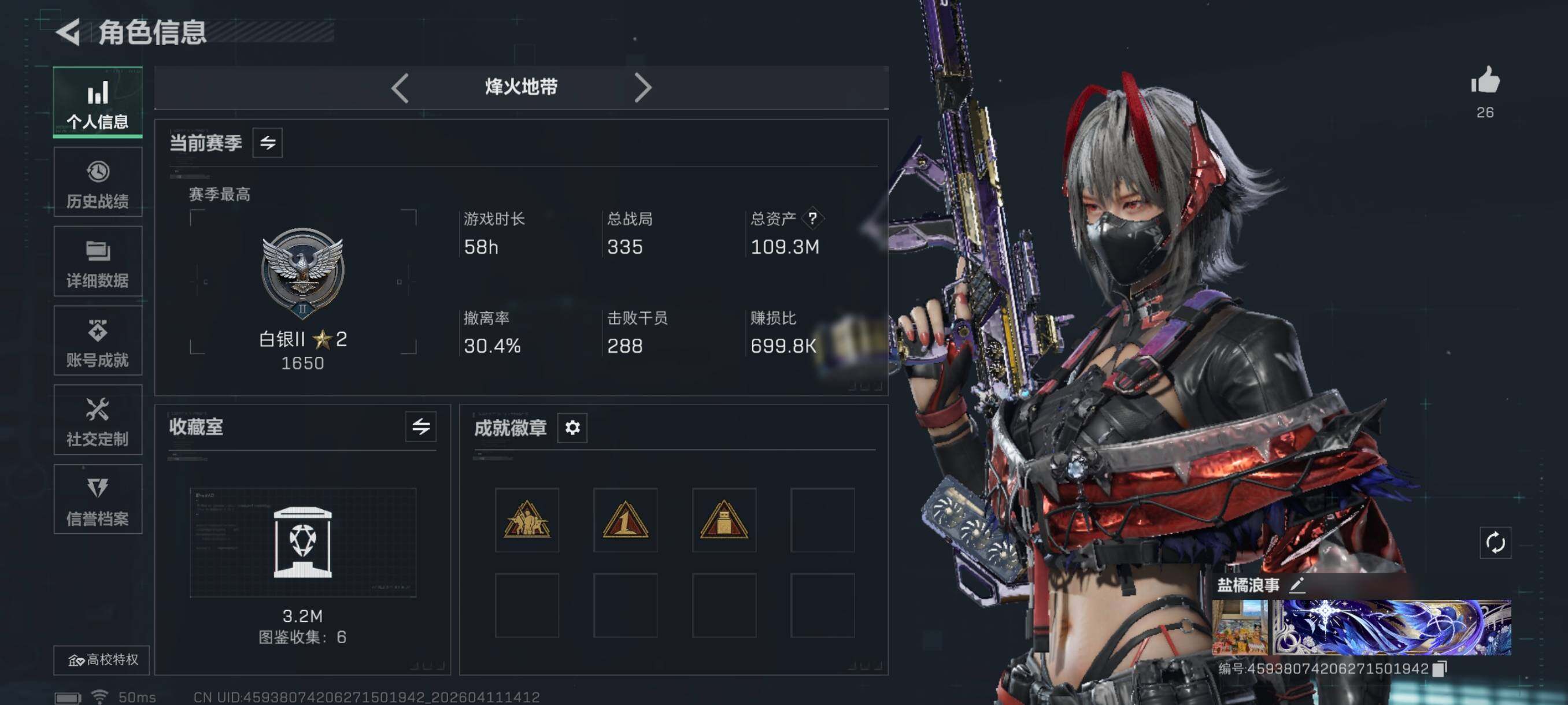 {特价出售}等级:60总资产:109.3M 流动资产 :90.7m 纯币:12215k 隐藏挂饰:S7 黑夜猎手2S 红皮:维什戴尔 战令皮肤:荒原猎手 刀皮:暗星 处刑者1级 砖皮:MP7 优品S 特勤处 仓库:7训练:4靶场:4