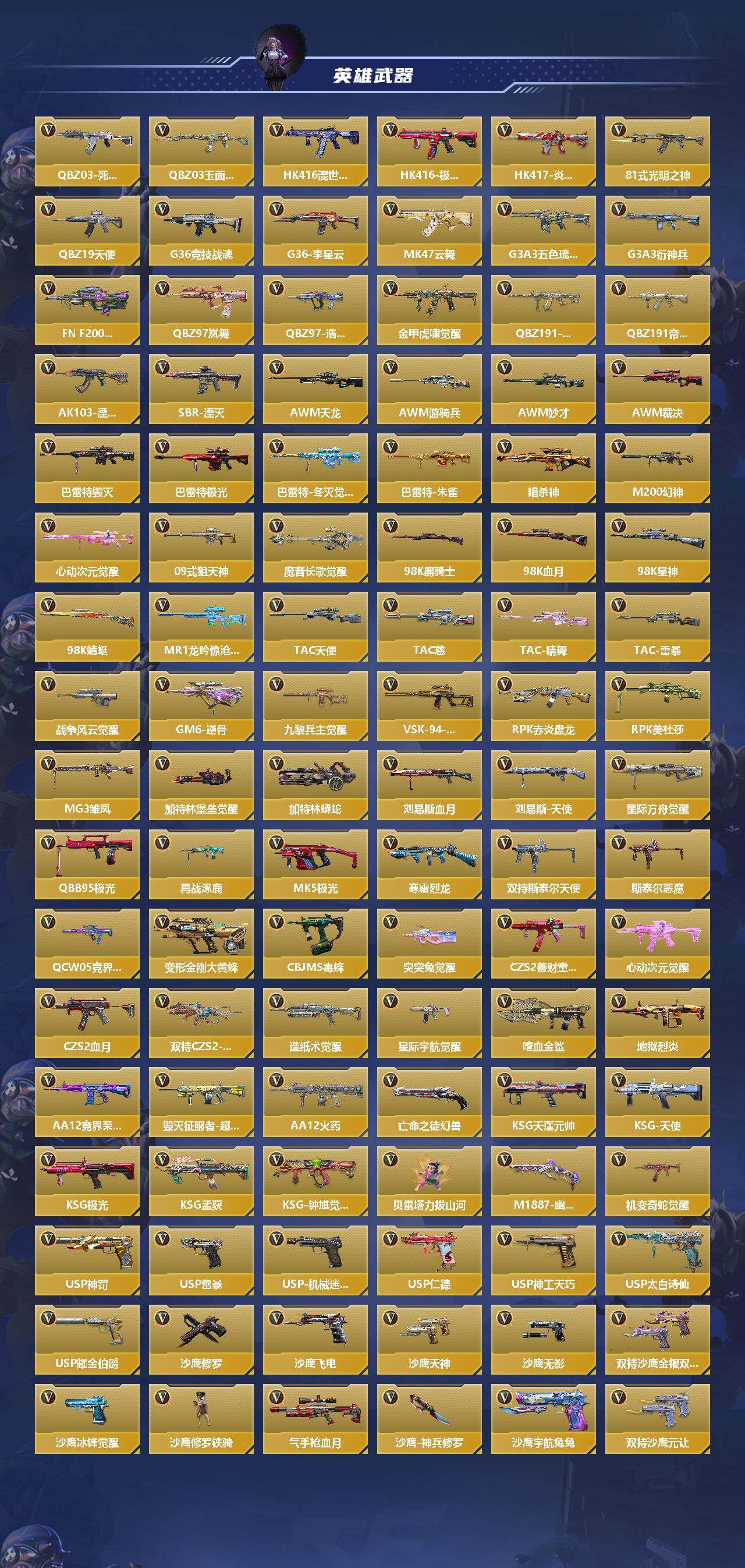 【QZX2515】VIP7/388V/王者之影/王者之心/王者之神/王者之蝶/王者之狱/王者之魂/王者之隐/王者之霆/M12S-雷霆王者/王者之尊/KSG-孟获/AN94-盖/81式-光明之神/M4A1-仲达/M4A1-星象/TAC-慈/M200-幻神/AWM-妙才/AWM-游骑兵/81式-阿波罗/COP 357-雷霆/葵/瞳/关小雨/岚兮儿/炽天使-X/祝融夫人/零-新生/步练师/刀锋-枪战王
