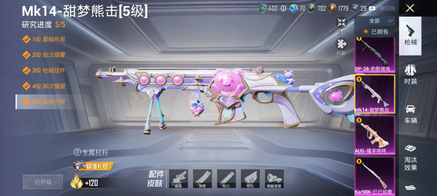 447-【 洛天依 2粉装7特效枪 可秒换绑不用等】 安卓Q区-39274热力值-81套装-159枪皮 【2粉装】 洛天依 星穹咏叹调【7特效枪】 Mk14-福马献瑞(5级) AKS-74U-森灵之息(5级) UMP45-萌骑冒险(5级) Mk14-甜梦熊击(5级) Kar98K-巳巳如意(5级) DP-28-豹影疾电(5级) AUG-暖羊咩咩(5级)【14热门】 M416-蓝色火焰 长空猛禽