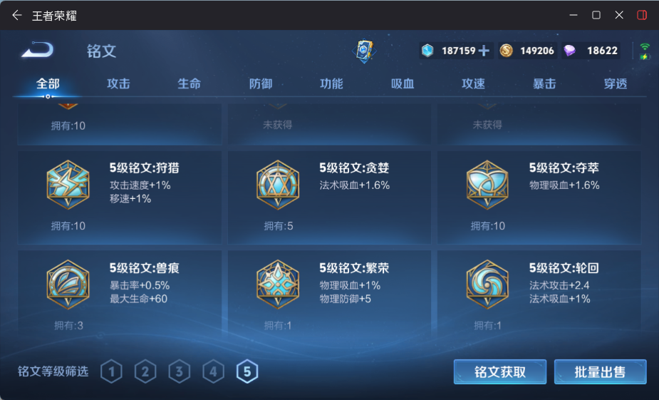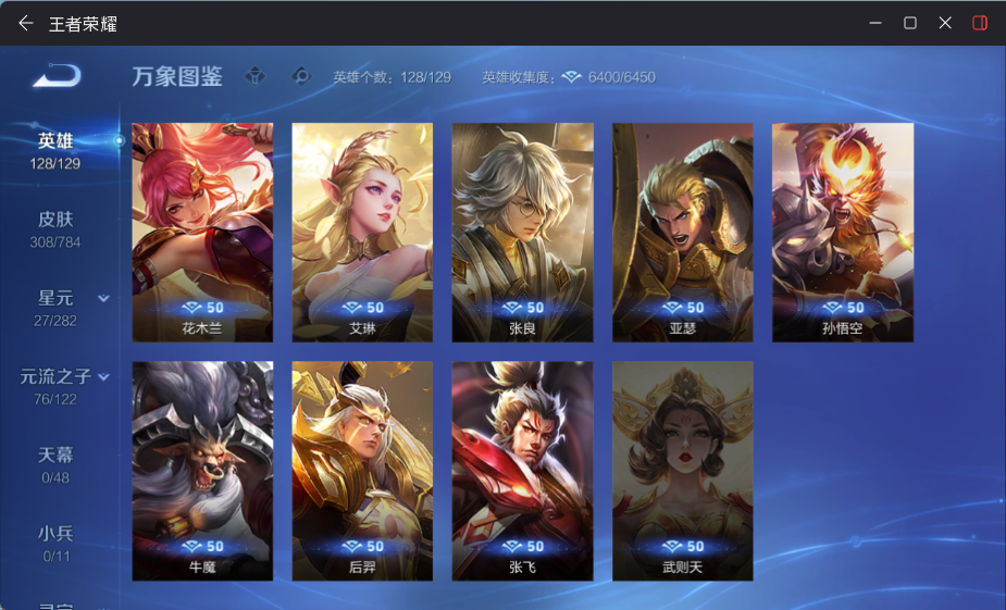 1.1w金标敖隐!离恨烟3无双!皮肤数量308印记总数8V9