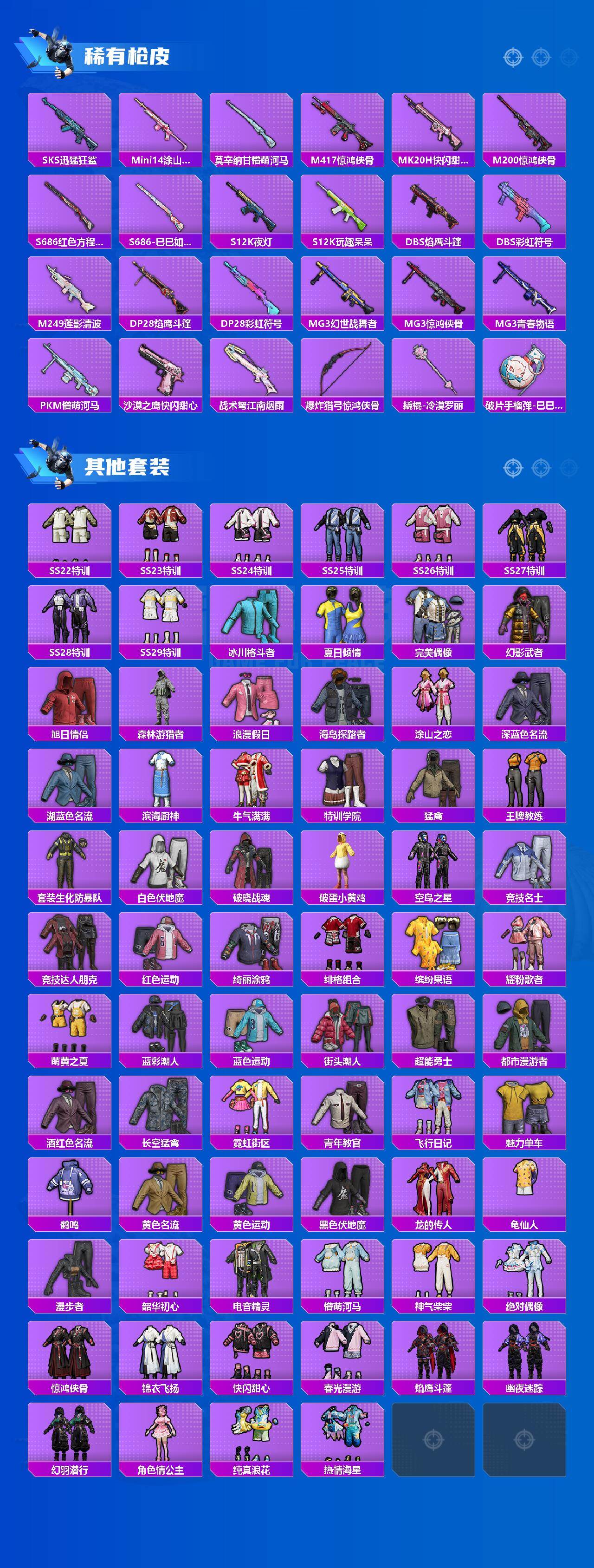 【粉色枪皮等级】:AKM-绿萝繁花(五级),SCAR-L-锦绣绵绵(五级),M416-电玩时刻(四级),GROZA-镜光银凌(五级),AUG-暖羊咩咩(五级),AUG-圣斗士星矢(七级),ACE3