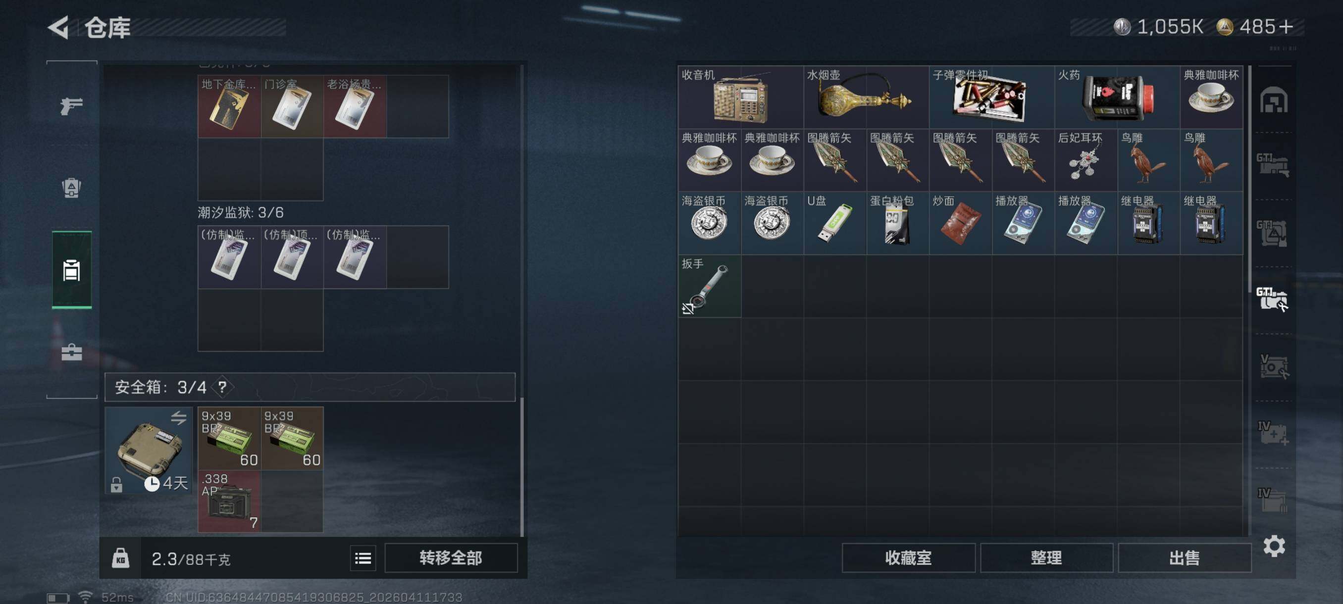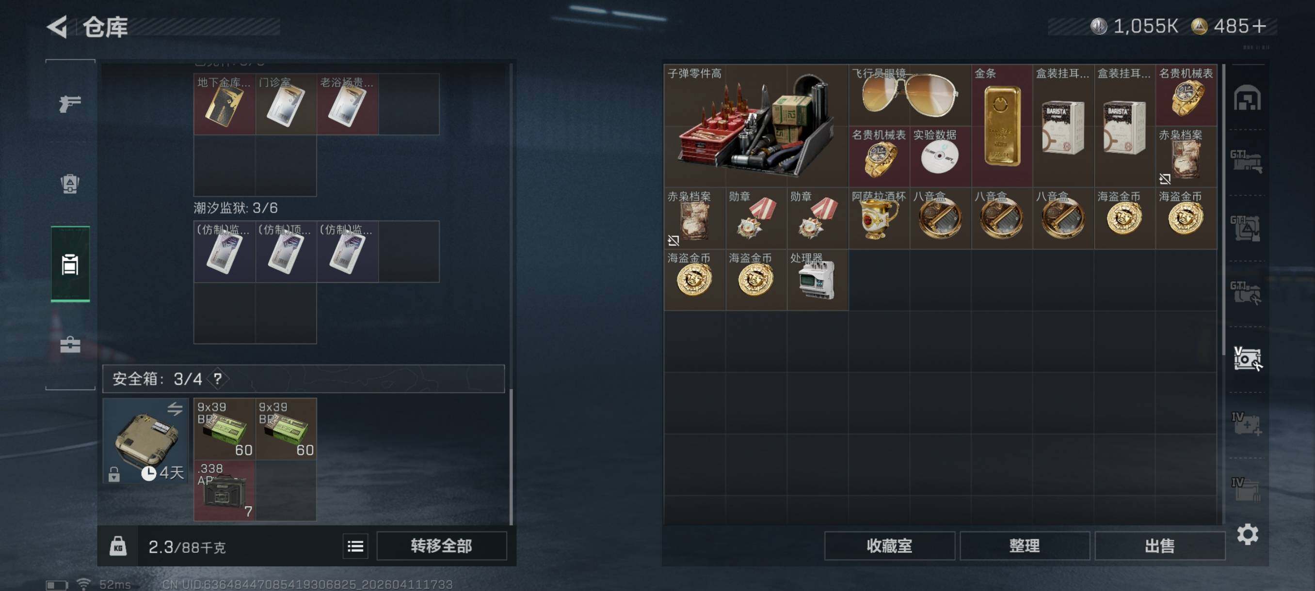 {特价出售}等级:60 总资产:101.4M 流动资产: 53.6 M 纯币:1055k 红皮:水墨云图 战令皮肤:金牌射手 风衣联动 刀皮: 信条 特勤处:仓库8,训练7,靶场7