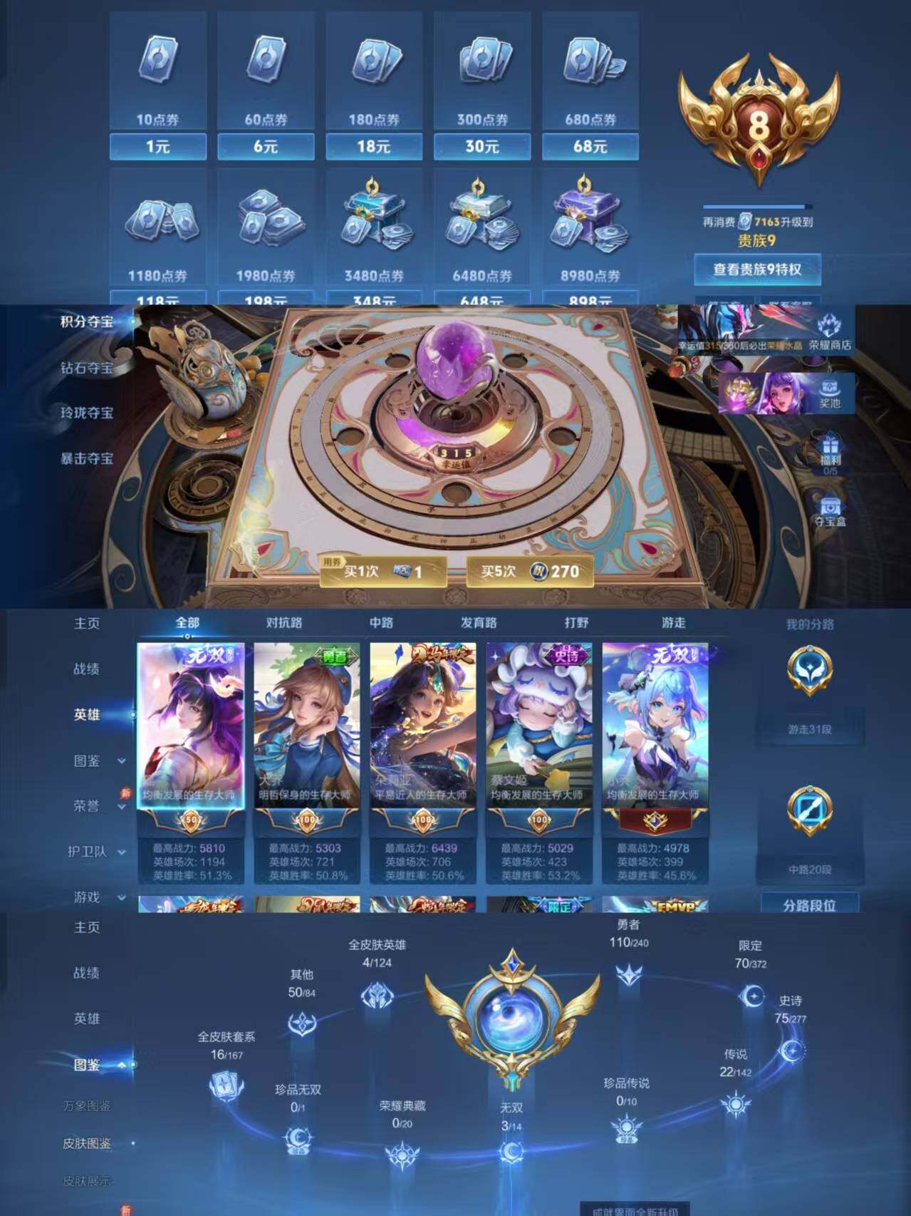 aw30,女号,8印记,游走31段中路20段,3无双22传说2星传说,时之祈愿