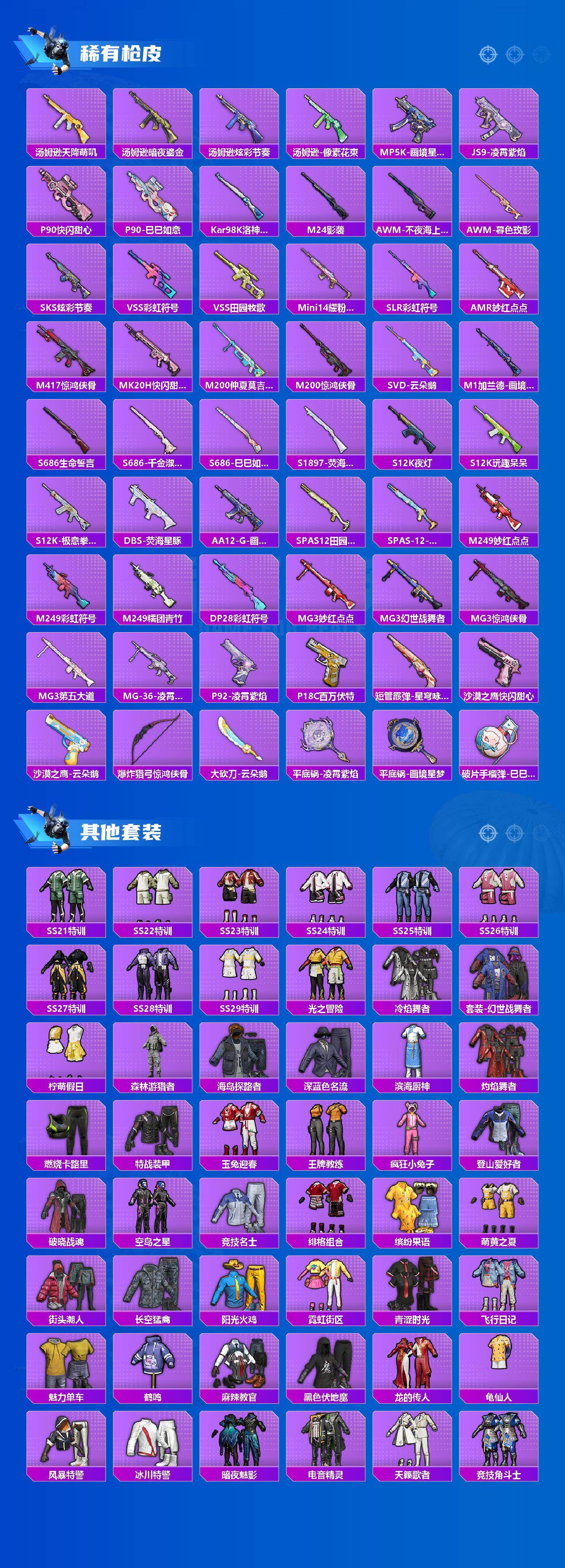 【粉色枪皮等级】:AKM-星际浪客(七级),M416-电玩时刻(五级),UMP45-萌骑冒险(四级),Kar98K-巳巳如意(五级),Mk14-福马献瑞(五级),AMR-智耀战神(七级)
