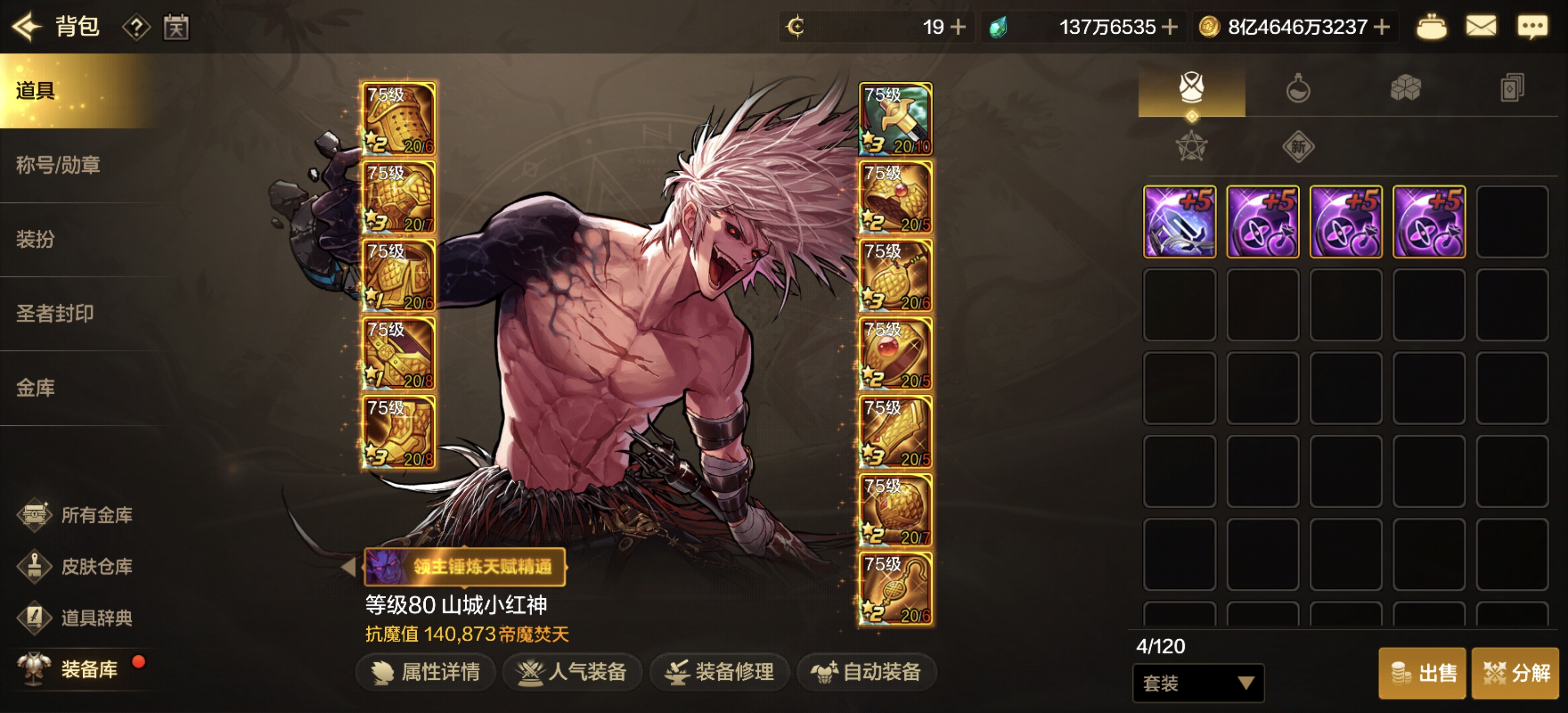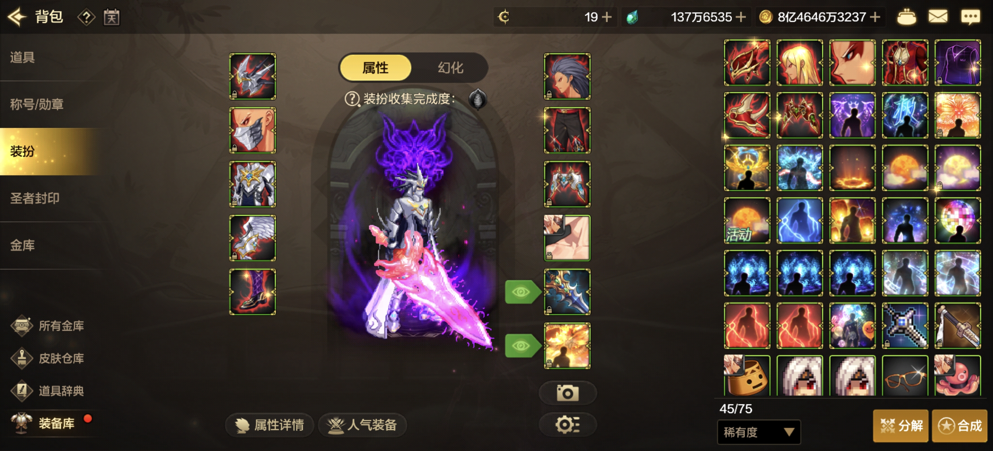 增幅10武器,有魔剑装扮,万氪的武器装扮,属强7+7+5+5!小号也有点打造!
