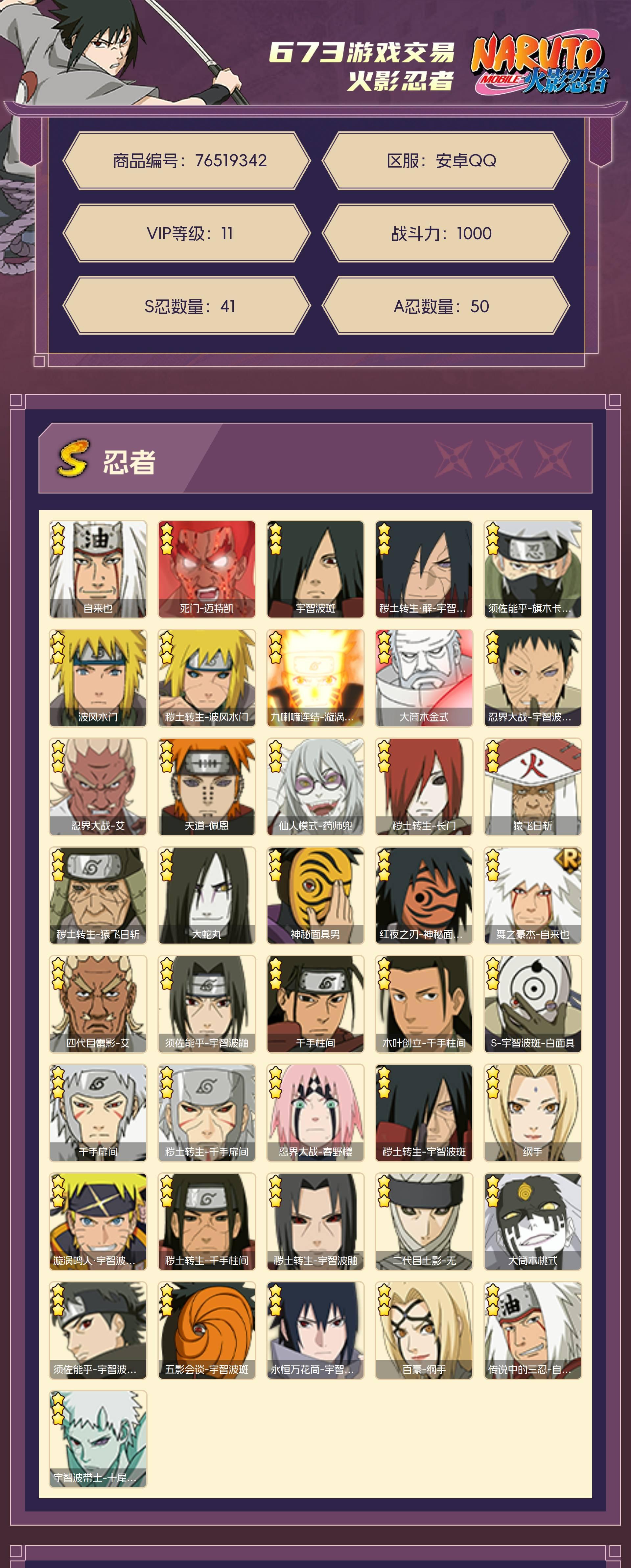 角色等级151 战斗力1000 S忍41 A忍50 11