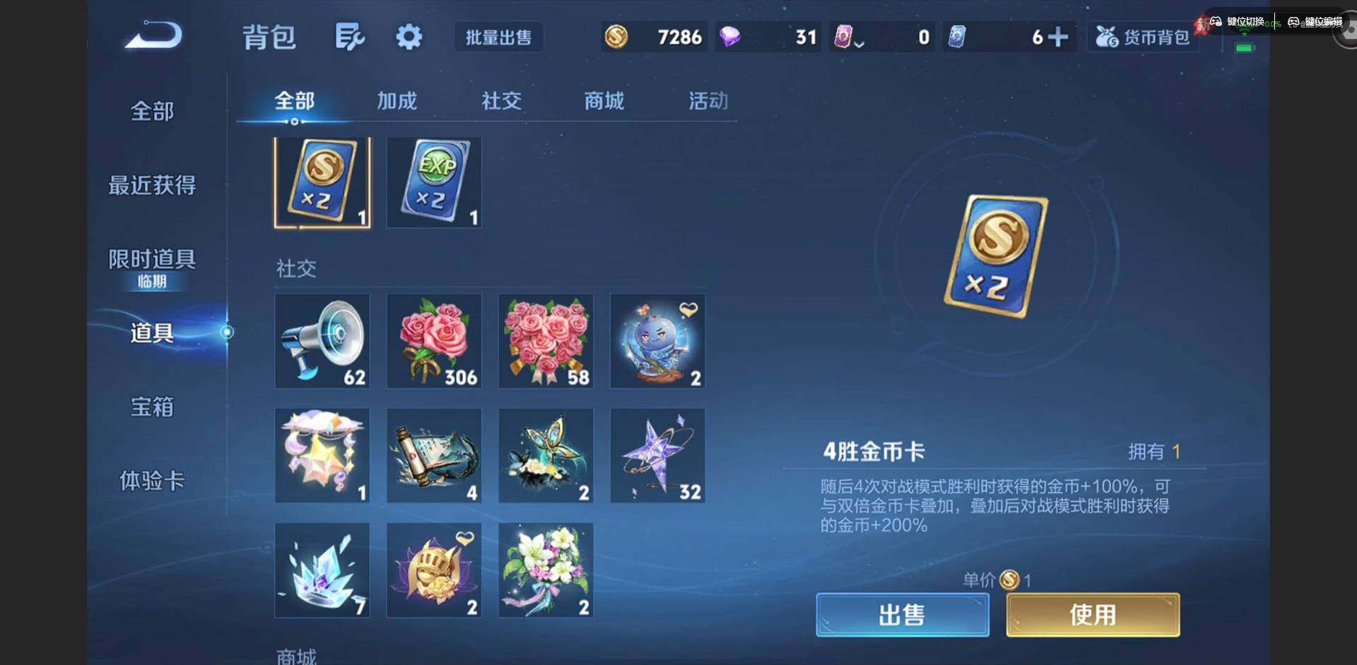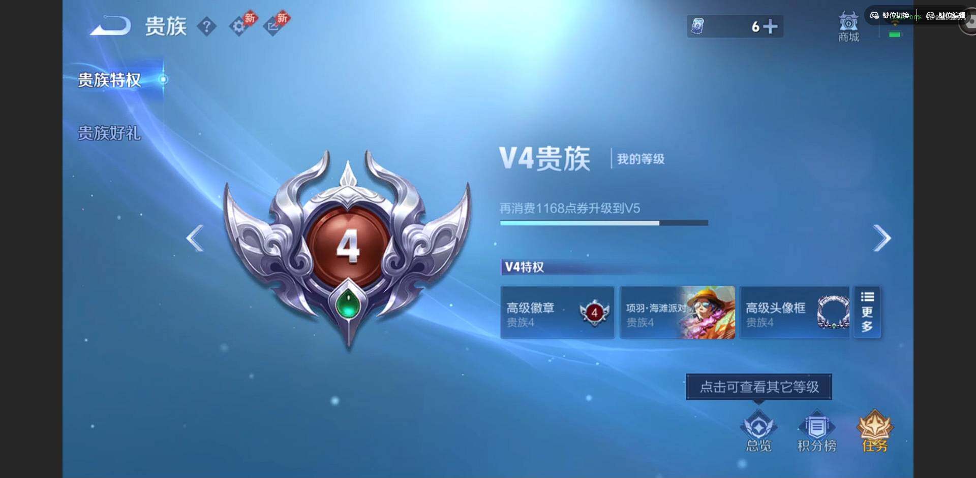 实名: 可修改 贵族等级: V4 英雄数: 78 皮肤数: 53 传说皮: 久