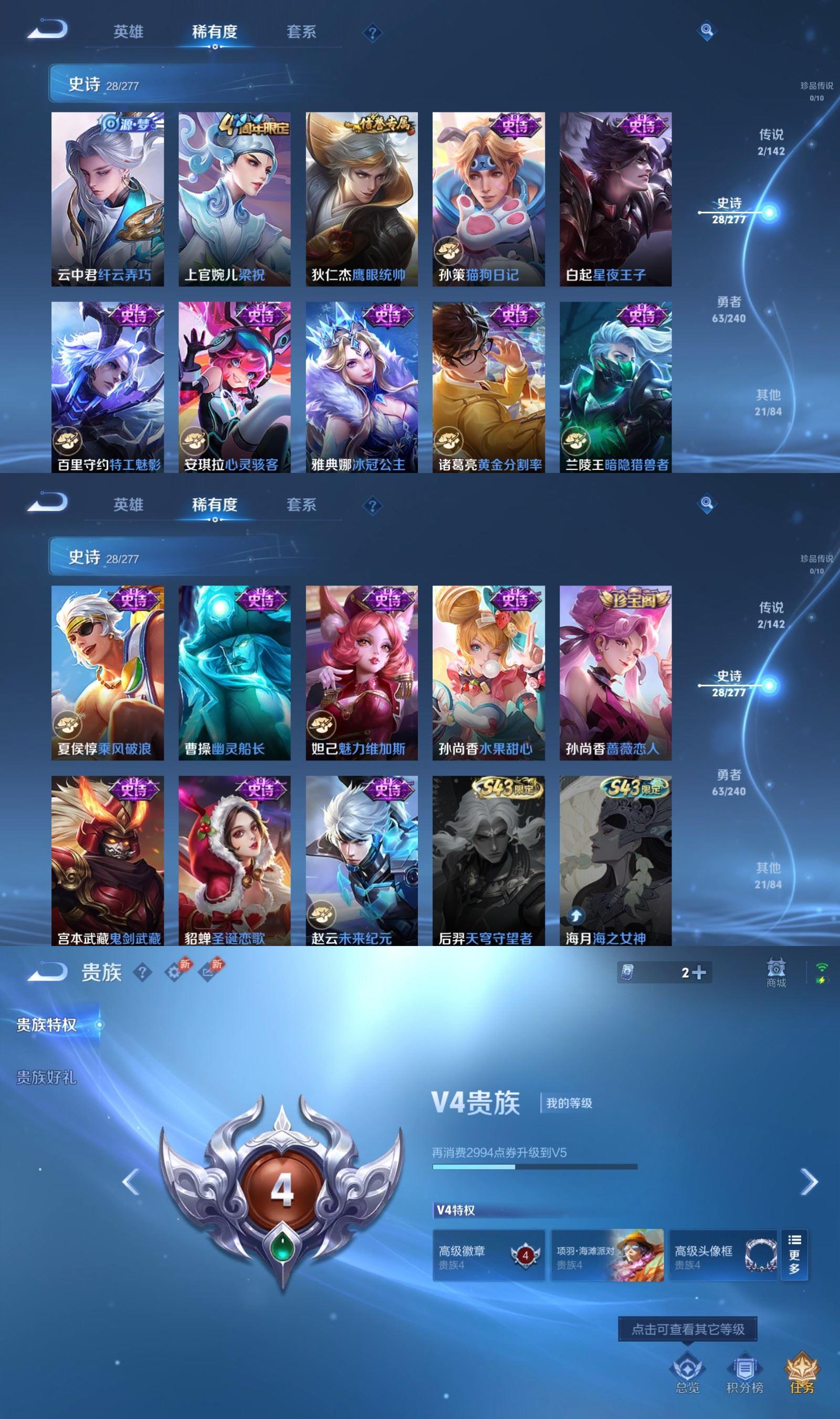 二五四六九一六_[王者荣耀]V42传说27史诗114皮肤至尊星耀IV