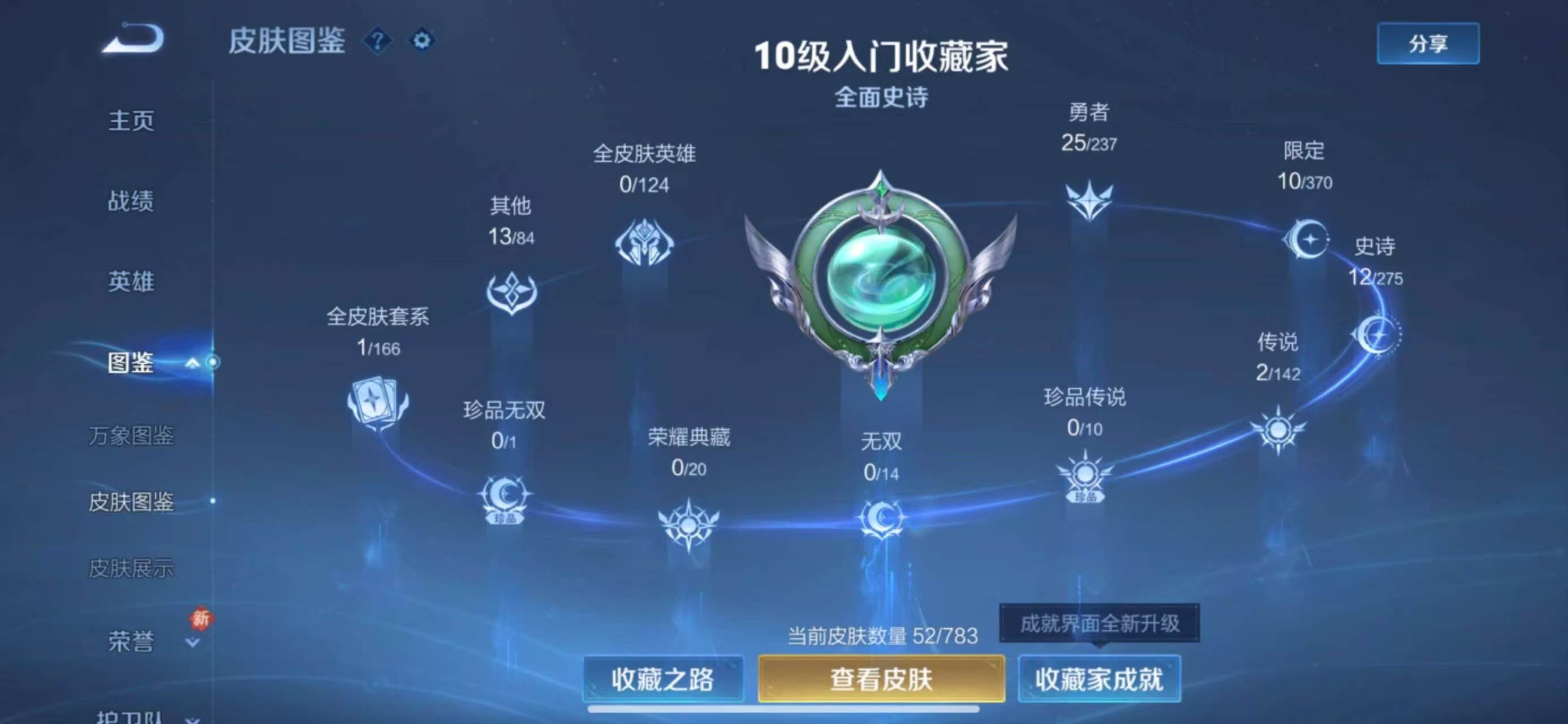 亏本清仓皮肤数54传说皮肤数2史诗皮肤数12英雄数87营地i