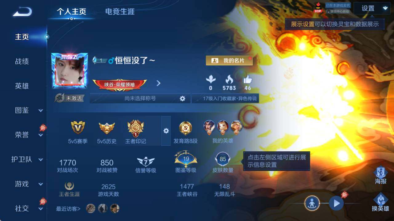 【16776944】贵族等级6/传说皮肤数量3/史诗皮肤数量24/皮肤数量85
