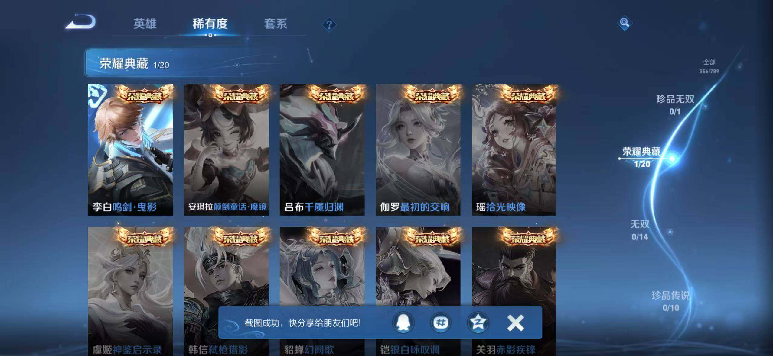 苹果Q-V6-至尊星耀V段位-127英雄-356皮肤-1典藏皮肤-14传说-1