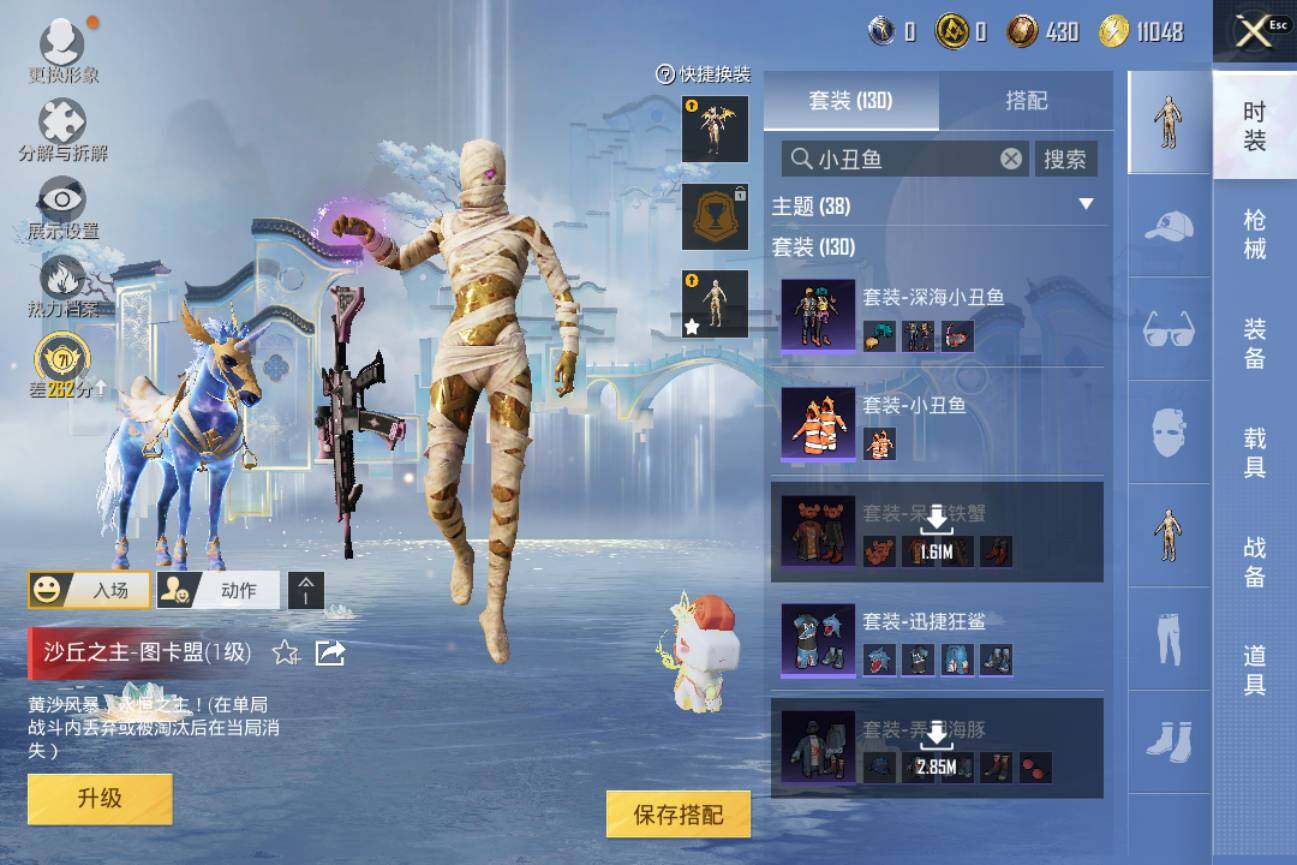 安卓【极品神装号 468扭蛋碎片/霜月狼主-尼诺(一级)/圣域龙灵-瑞拉(一级)/沙丘之主-图卡盟(一级)/都市猎人/蓝螳螂/小丑鱼/M416-超新星(三级)/AUG-星梦奇缘(三级)/3神装-7粉装-14特效枪-2载具-10粉色飞行器】 手Q--70687热力值-9王牌印记-130套装-207枪皮