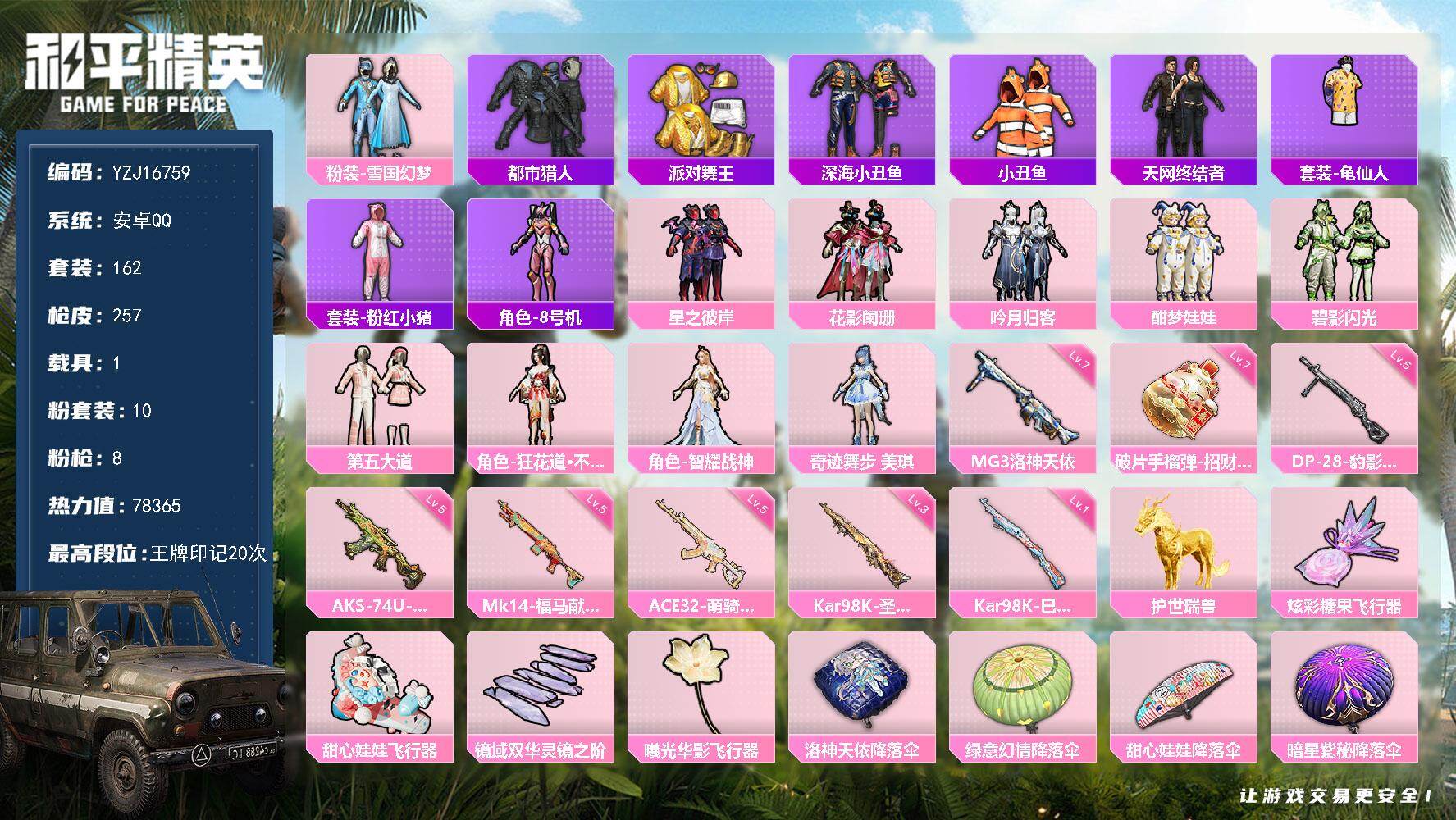 二五五八八四三_不可二次-安卓Q-5稀有1载具10粉装8特效枪16热门【极品