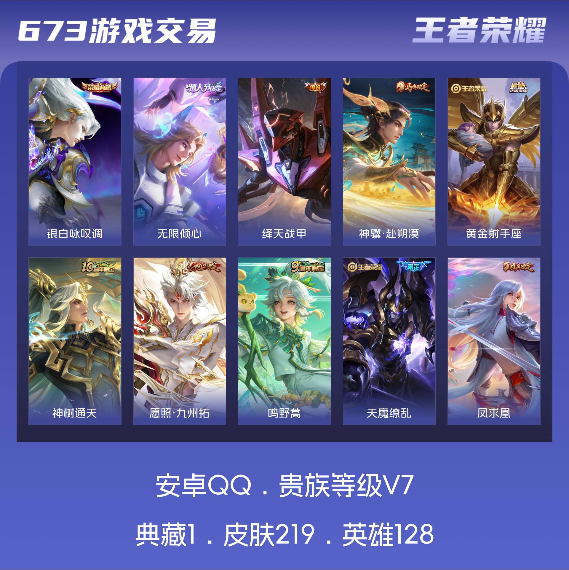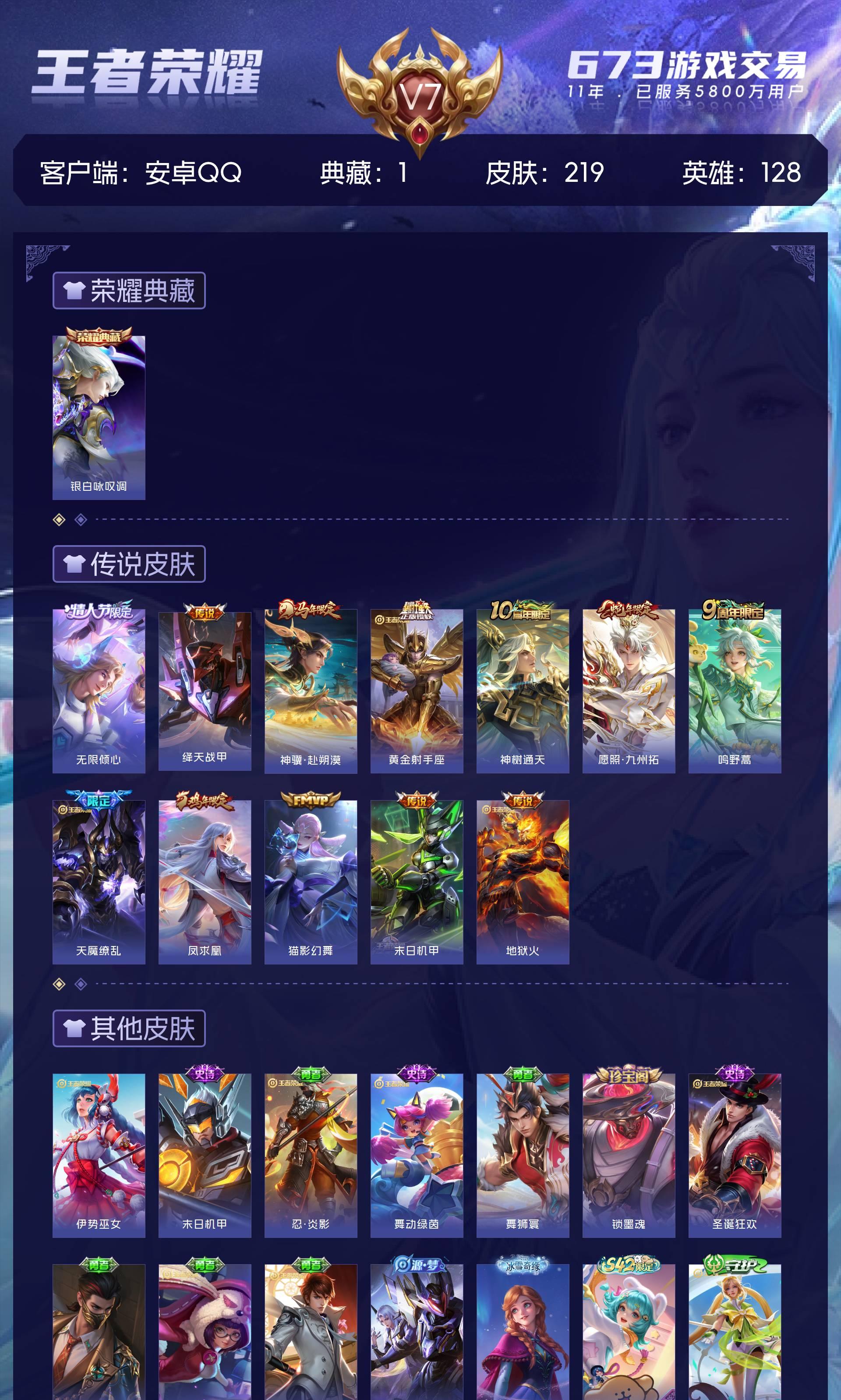 V7 皮肤219 英雄128 非凡王者 荣耀典藏1 传说13