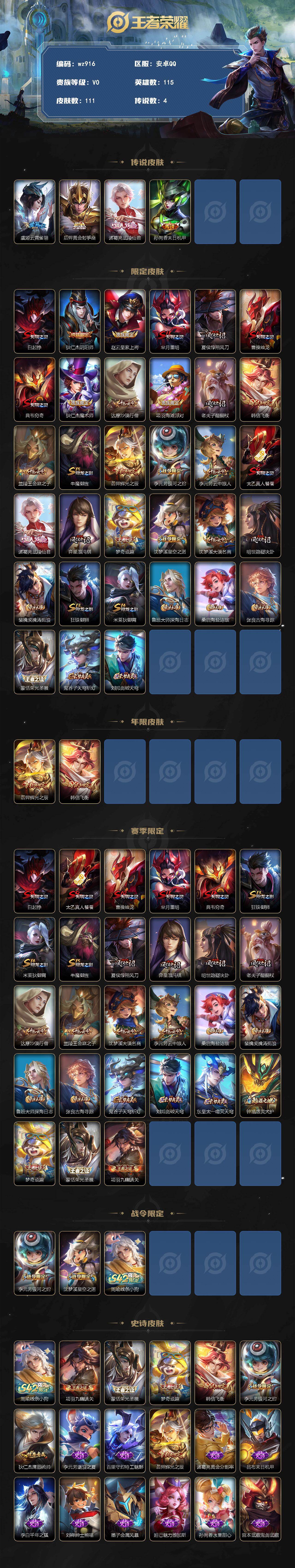 安卓Q-V0-至尊星耀III段位-115英雄-111皮肤-4传说-22史诗【