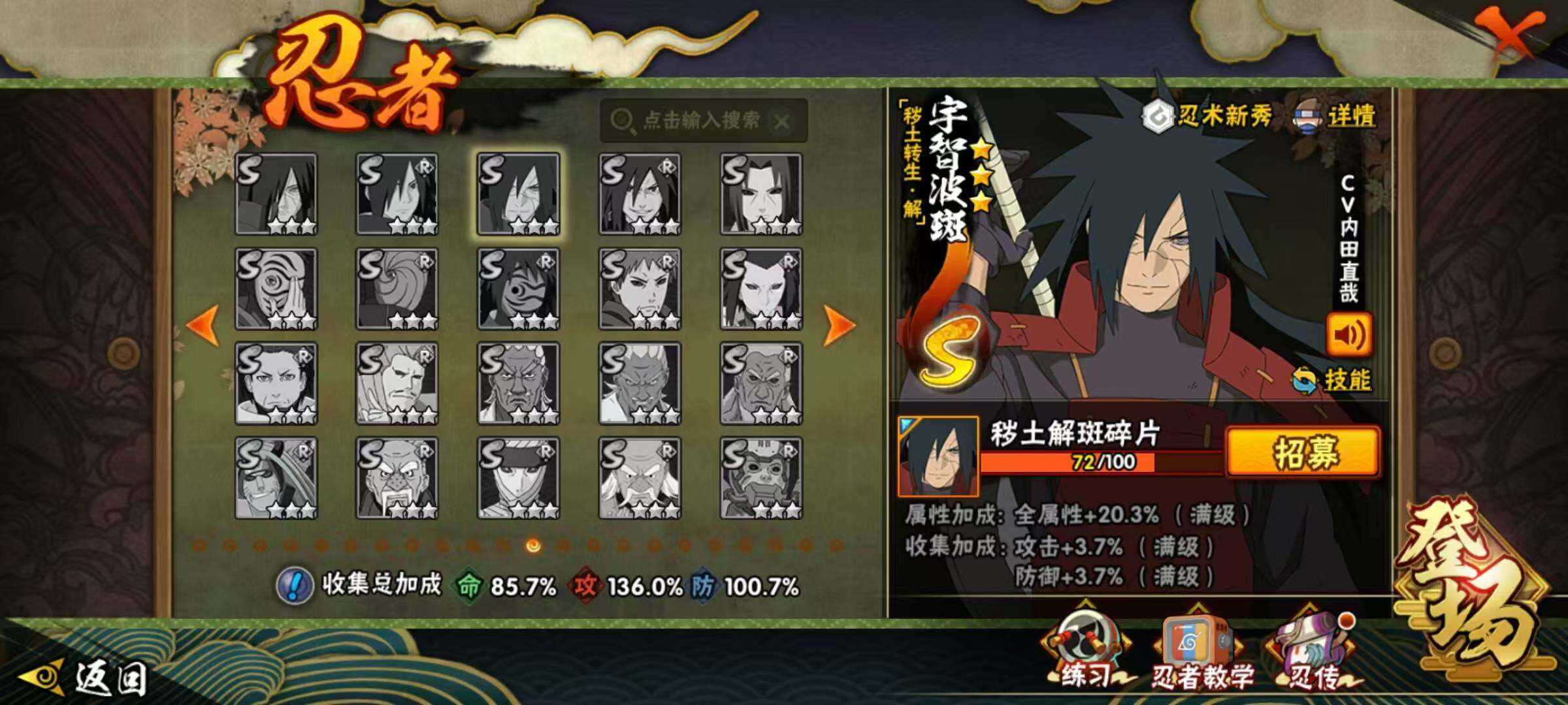 自来也78片,解斑72片。舍人92片