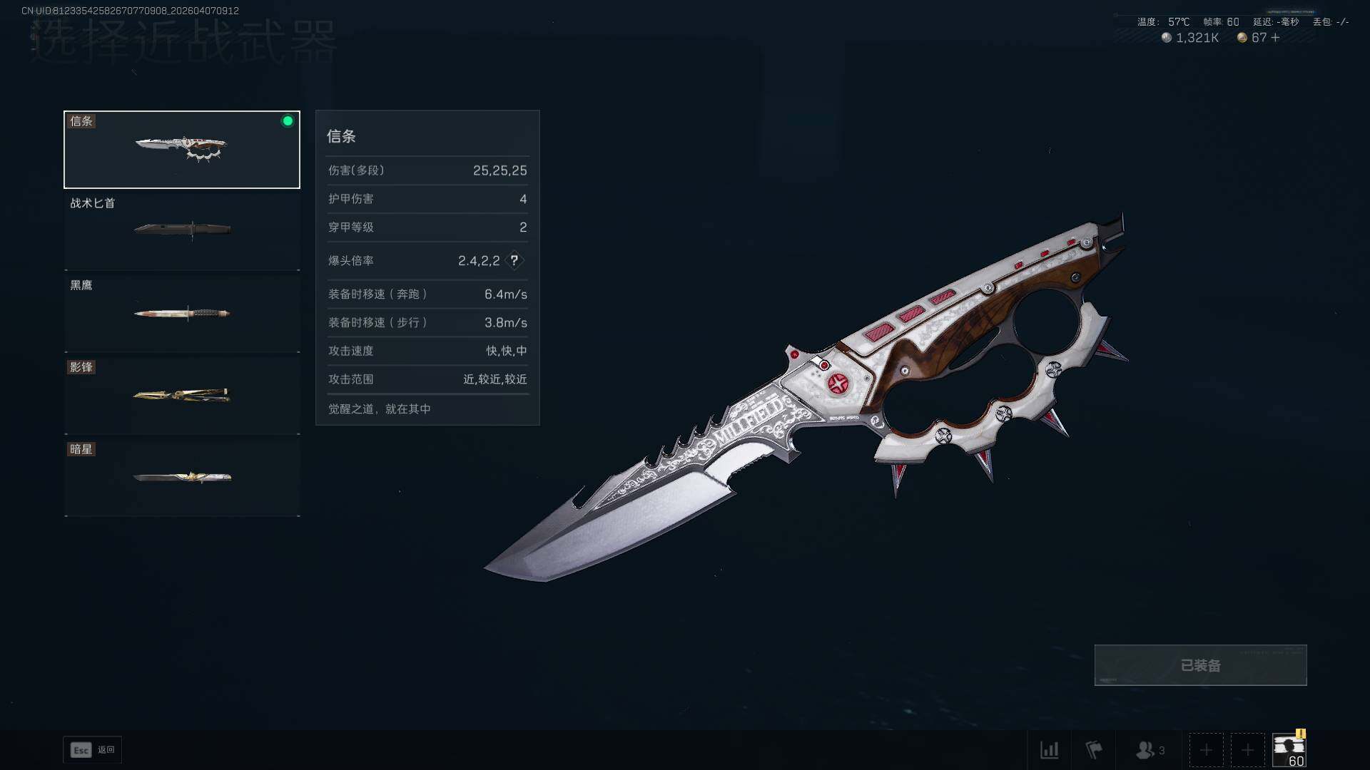 【近战皮肤】:近战-暗星,近战-信条,近战-影锋,近战-黑鹰