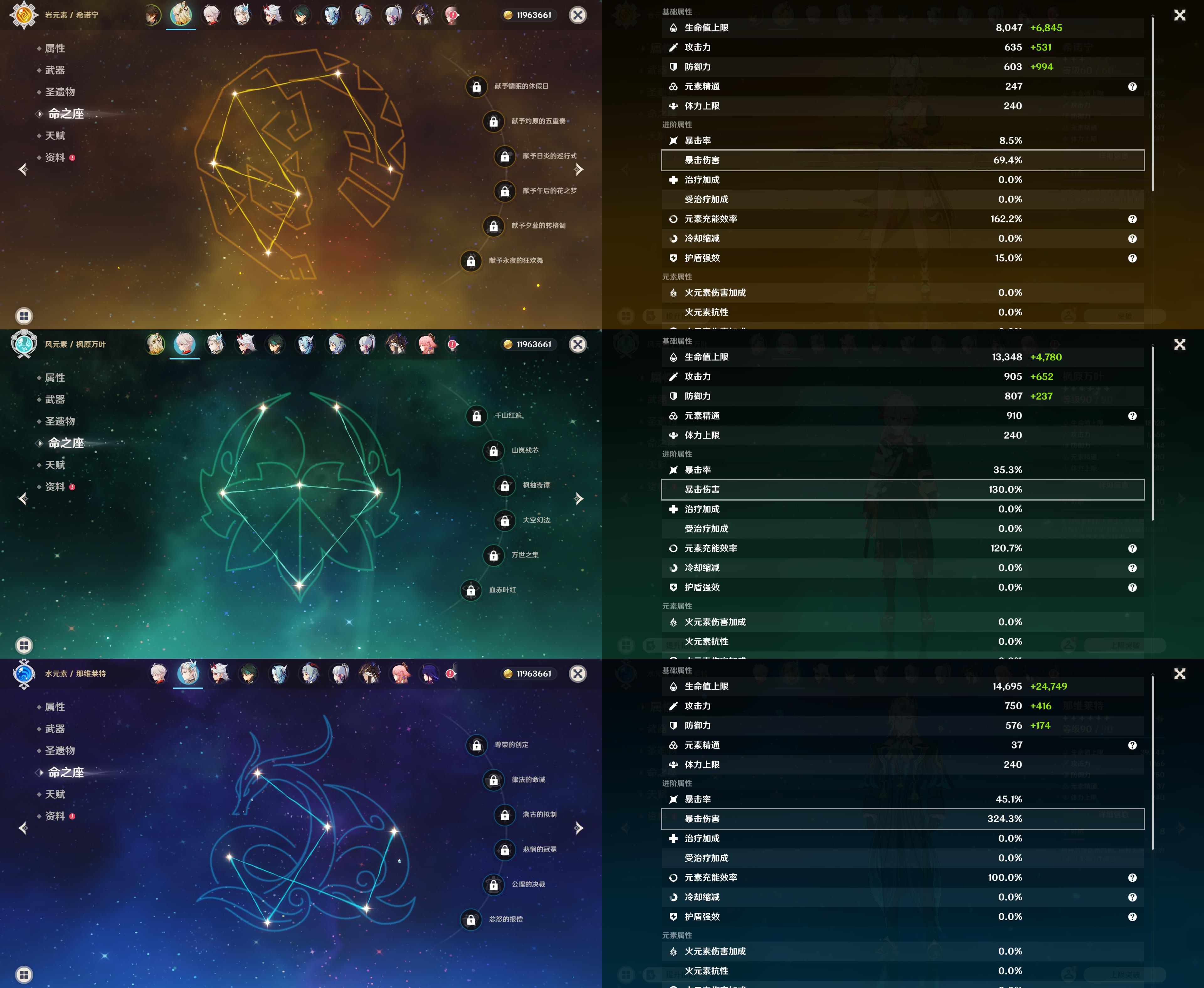 60级/66黄/女主/32个五星角色/20个五星武器/希诺宁/枫原