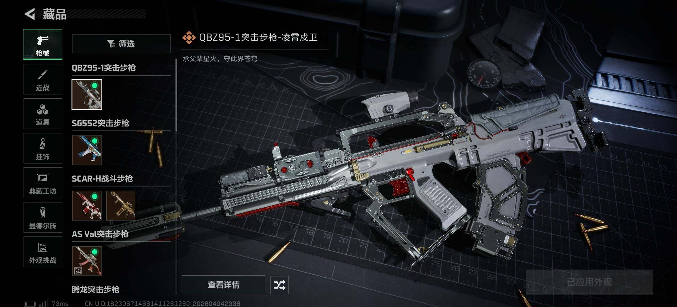 【传说外观】:QBZ95-1突击步枪-凌霄戍卫,SG552突击步枪-点翠,SCAR-H战斗步枪-启航,SCAR-H战斗步枪-荼蘼,腾龙突击步枪-马年祥瑞,腾龙突击步枪-万金泪冠,KC17突击步枪-点翠,SR-3M紧凑突
