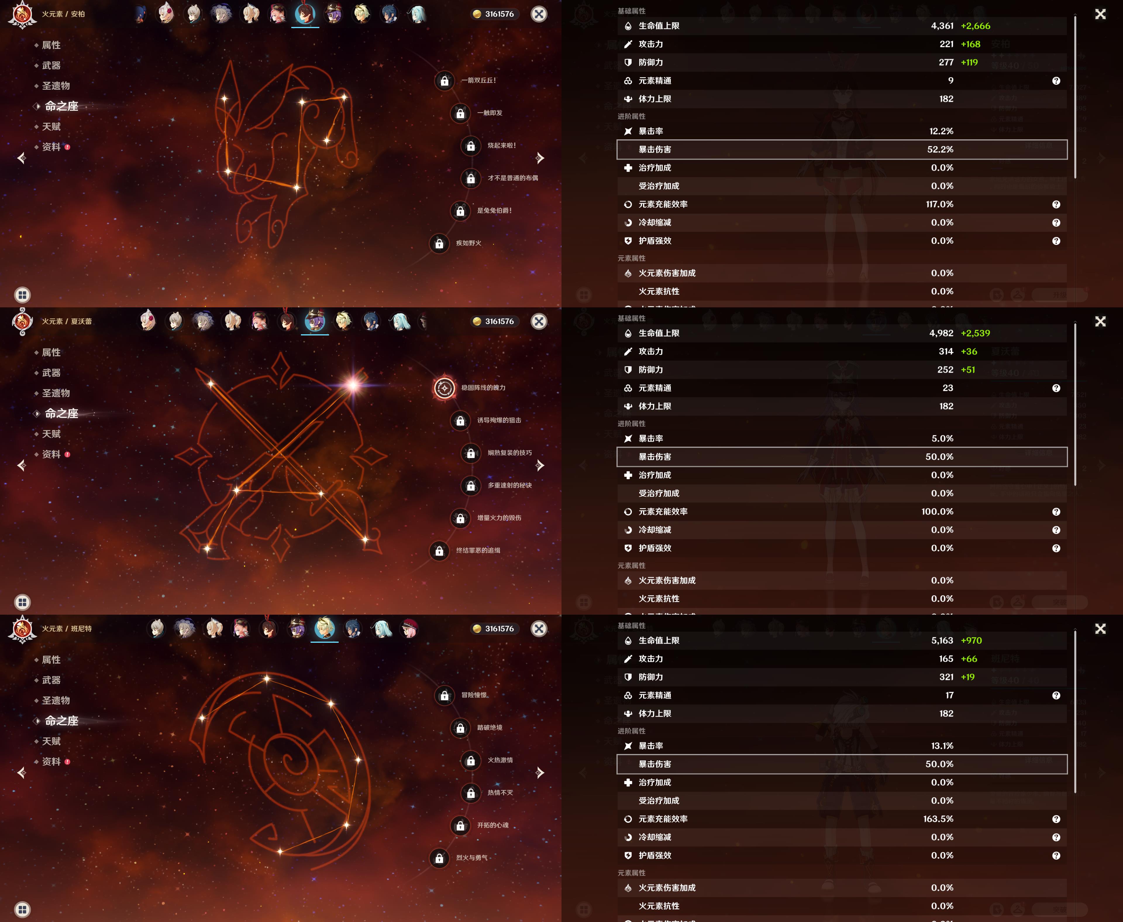 42级/3黄/女主/2个五星角色/1个五星武器/阿蕾奇诺/刻晴/四