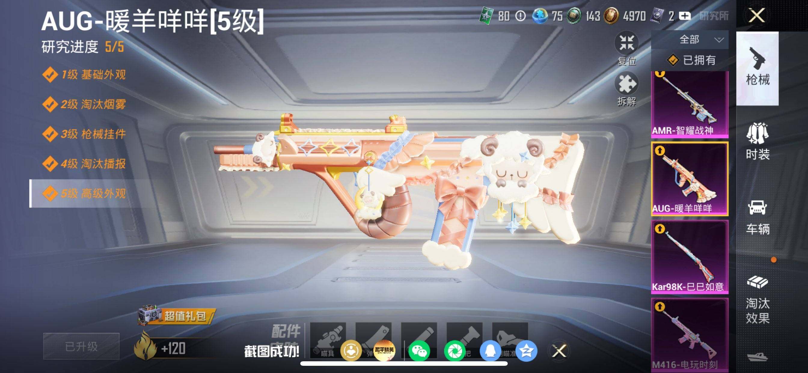 【粉色枪皮等级】:M416-电玩时刻(五级),AUG-暖羊咩咩