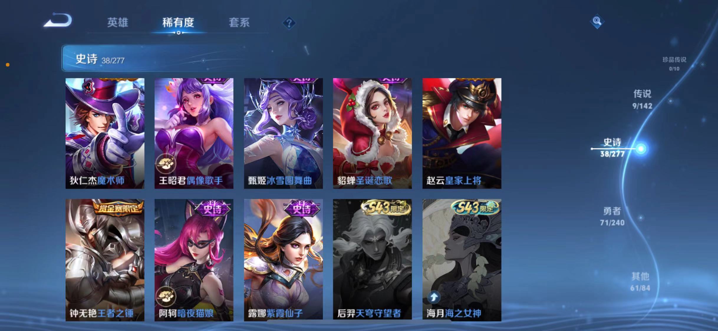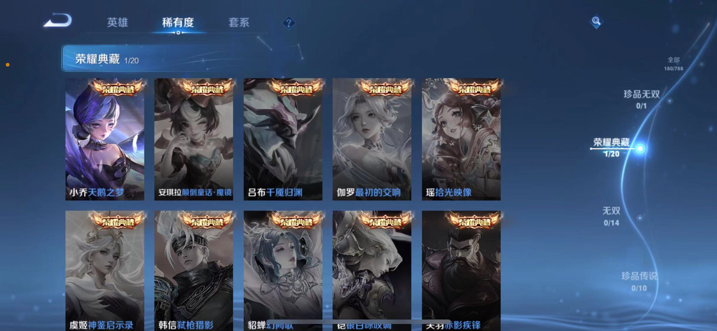 v10小号,至尊宝凤求凰武陵仙君,1典藏180皮肤,9传说
