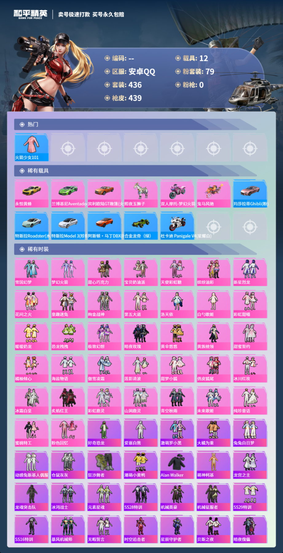 12载具-436套装-439枪皮-安卓 手Q-79粉装-26特效枪-12载具-热力值-16印记-436套装-439枪皮