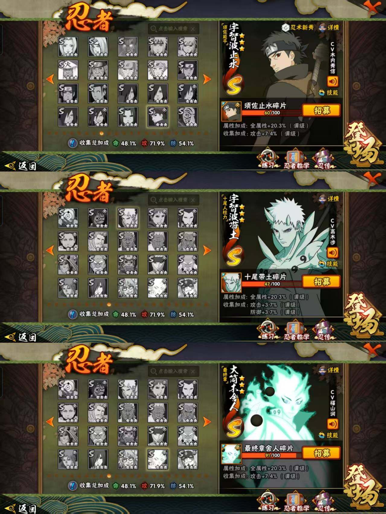 aw41,523万战,11s忍27a忍,漂泊带土忍战带土九喇嘛水门传说自来也五影斑须佐卡卡西十周年鸣佐须佐鼬机械鸣人,最终章舍人91碎片,漩涡鸣人·宇智波佐助(3星),宇智波佐助「永恒万花筒」(3星),旗木卡卡西「须佐能乎」(3星),自来也「舞之豪杰」(3星),自来也「传说中的三忍」(3星),漩涡鸣人「九喇嘛连结」(3星),宇智波鼬「须佐能乎」(3星),宇智波斑「五影会谈」(3星),宇智波带土「