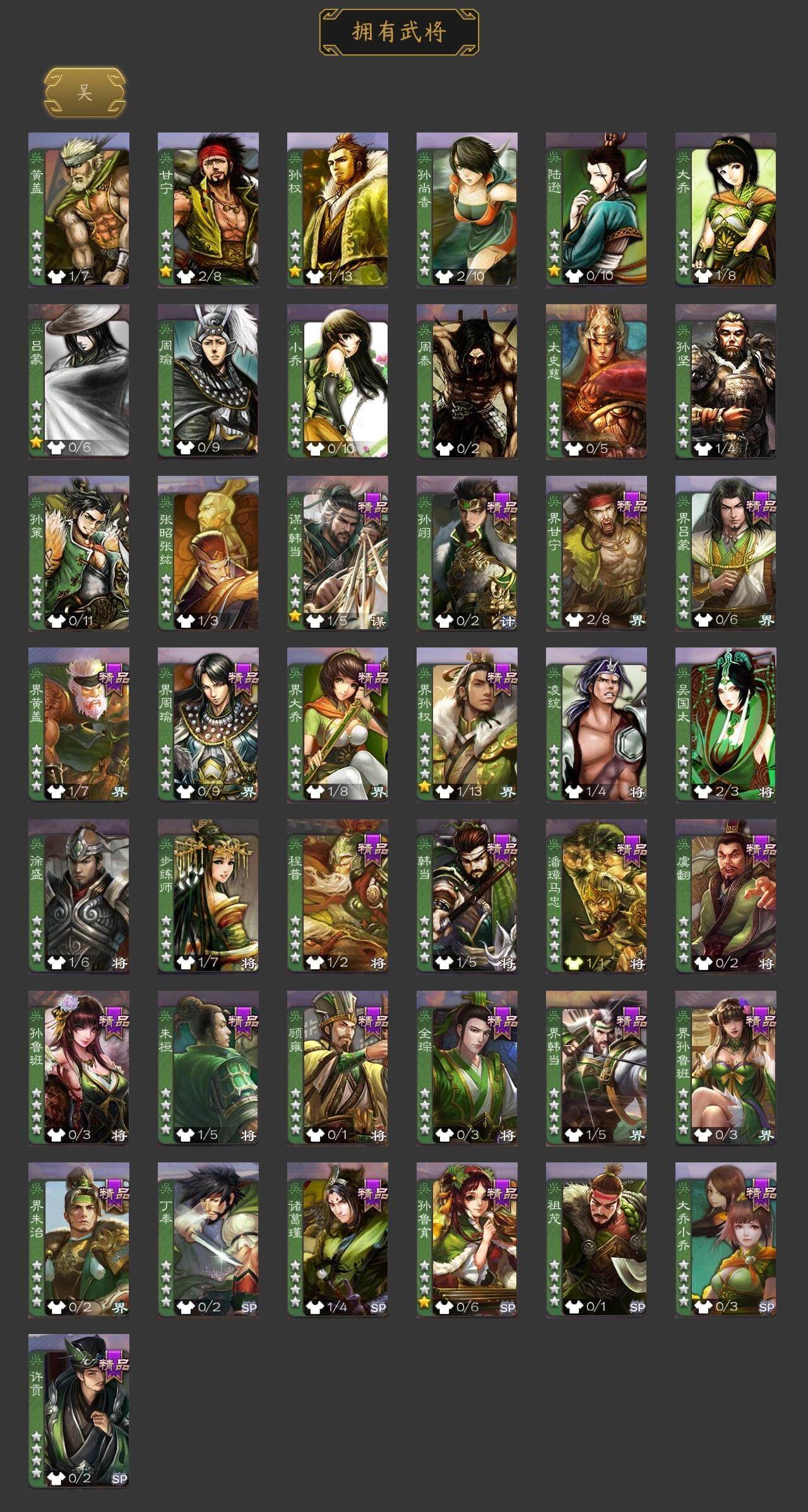 曹婴,戏志才,蒋济,程昱,周群,谯周,刘焉,SP关羽,SP曹仁,乐进,曹昂,诸葛诞,朱灵,文聘,SP姜维,钟会,曹冲,郭淮,满宠,界王异,界曹操,界司马懿,界夏侯惇,界张辽,李典,曹真,韩