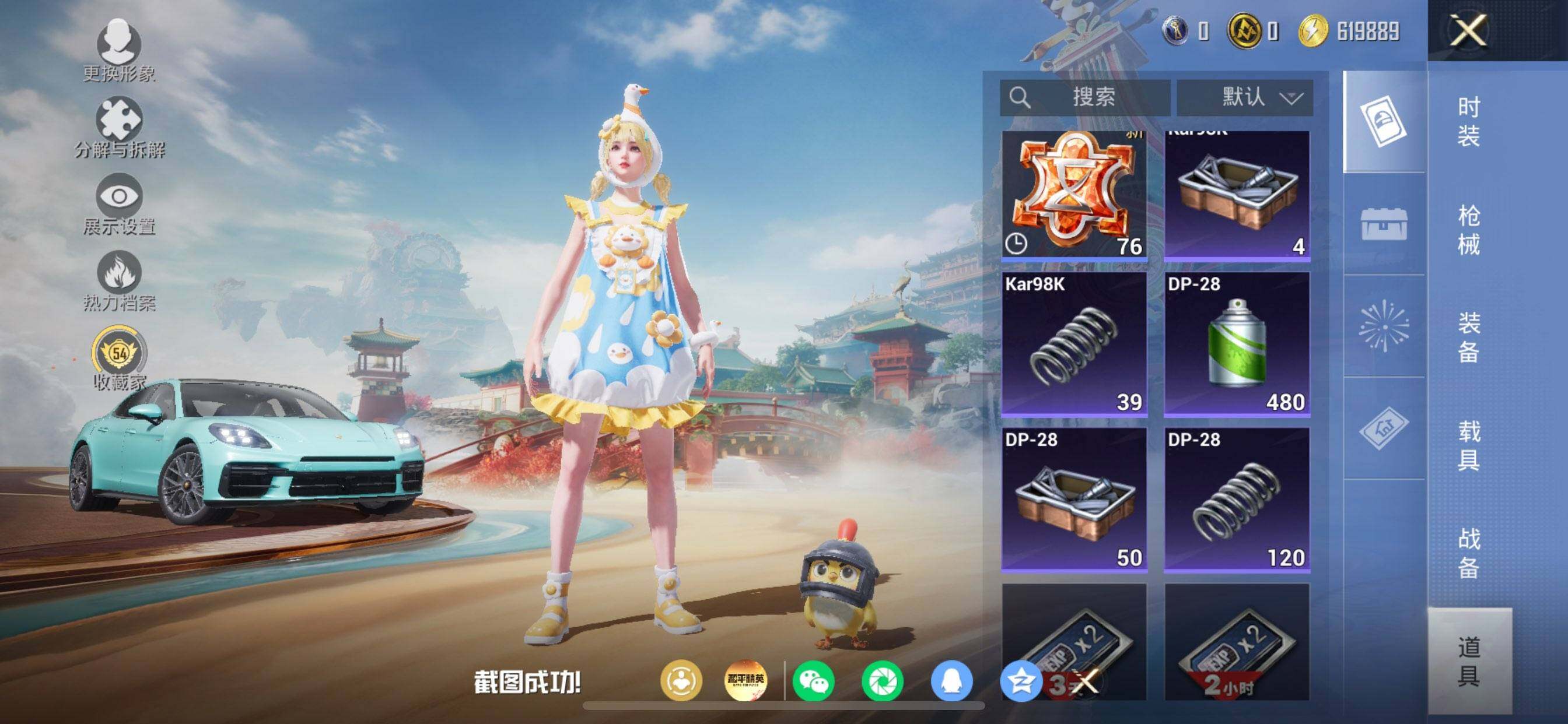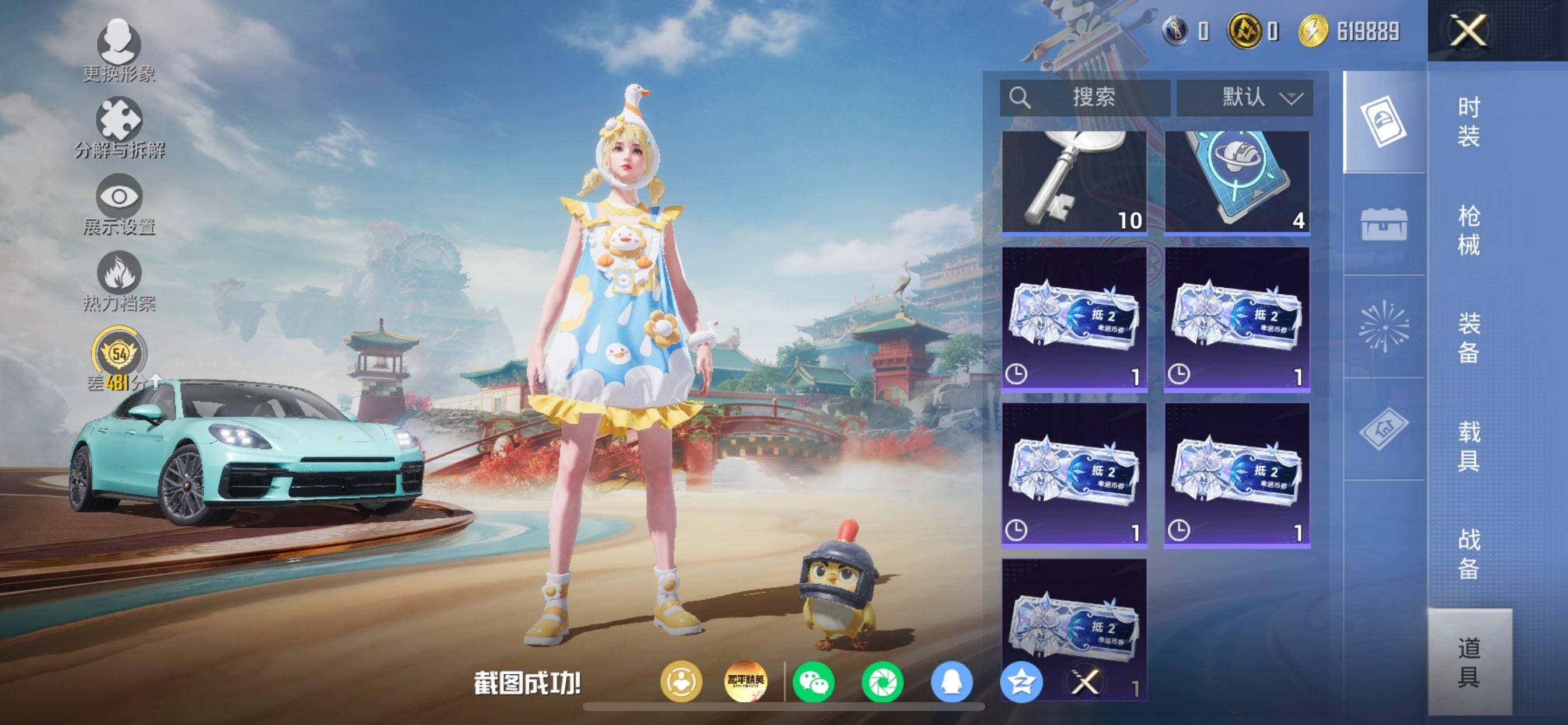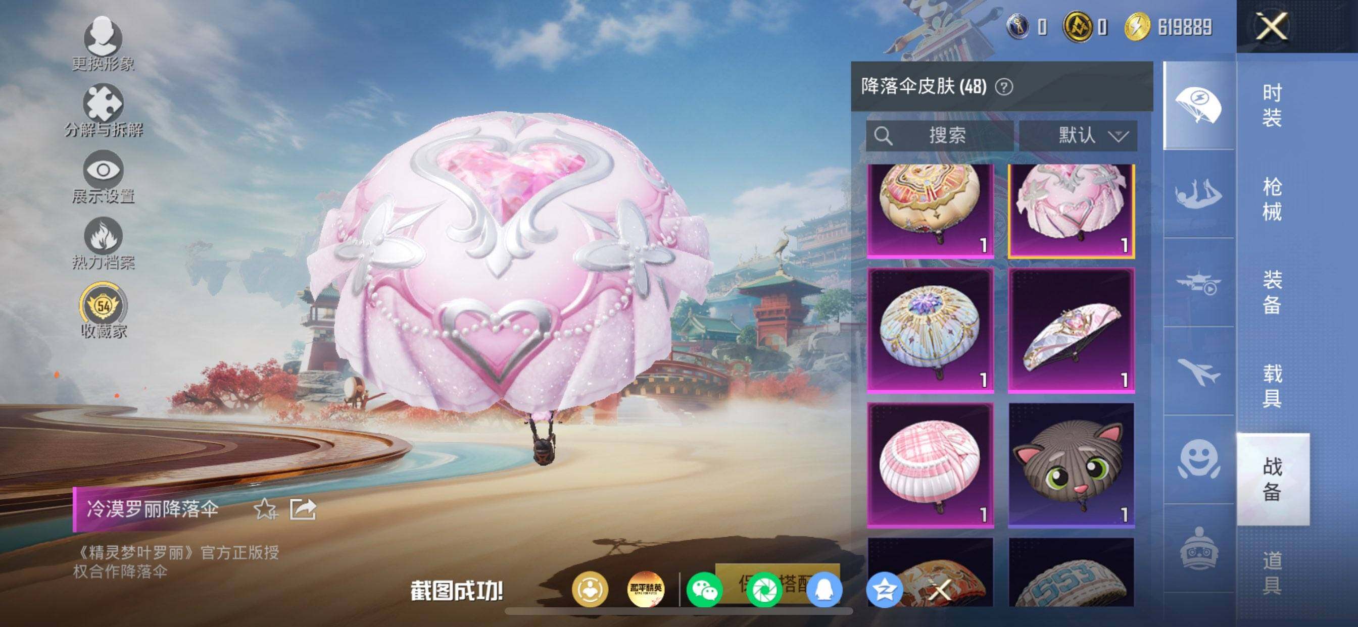 苹果 手Q-4粉装-7特效枪-2载具-1粉色飞行器-42014热力值-8王牌印记-83套装-134枪皮
