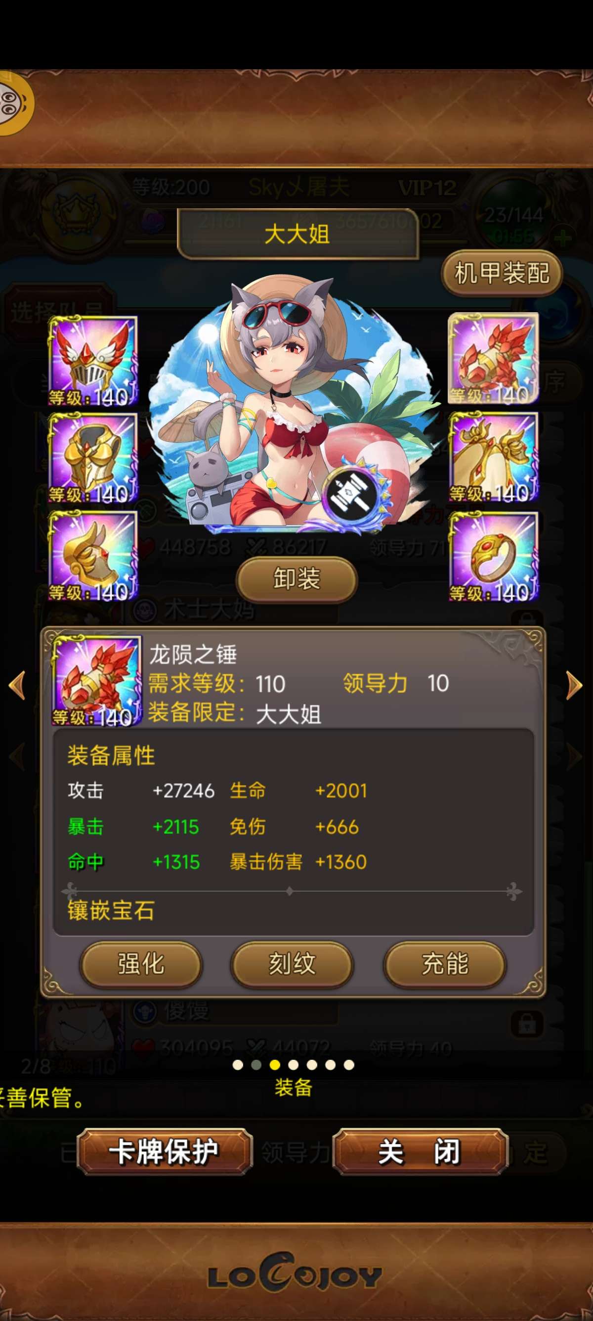 14张R卡 半R几张 只有绿龙没武戒 主力队装备齐全