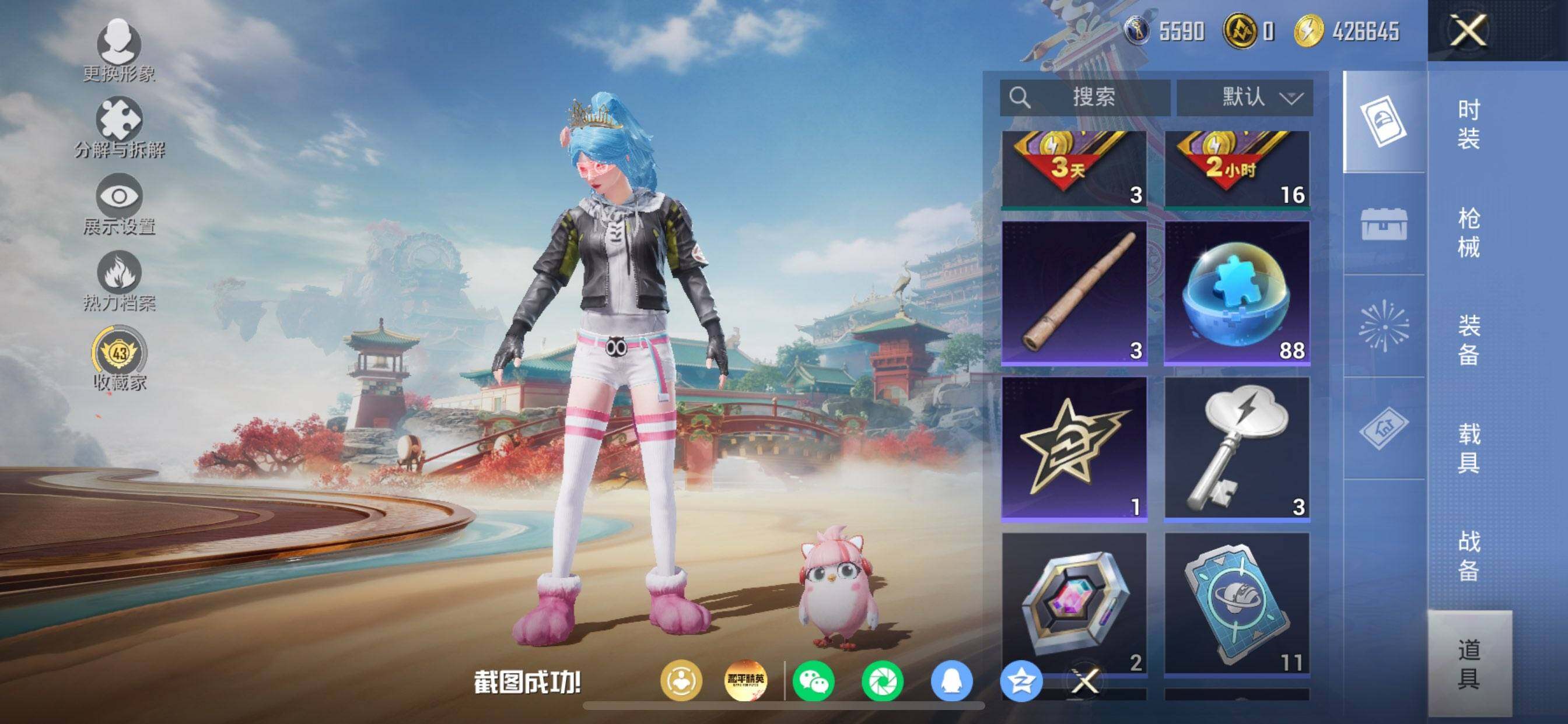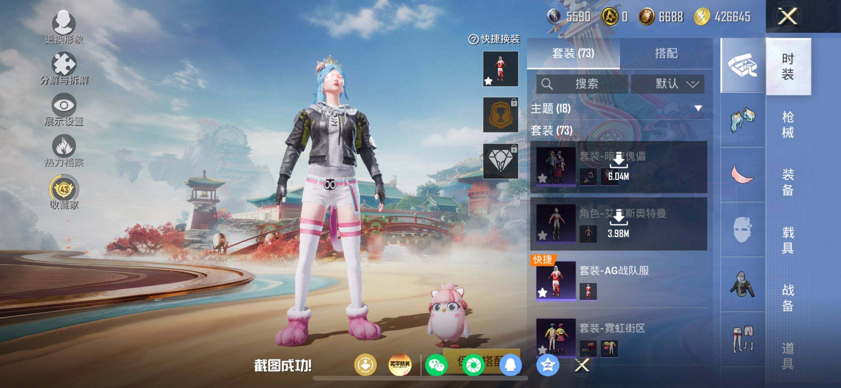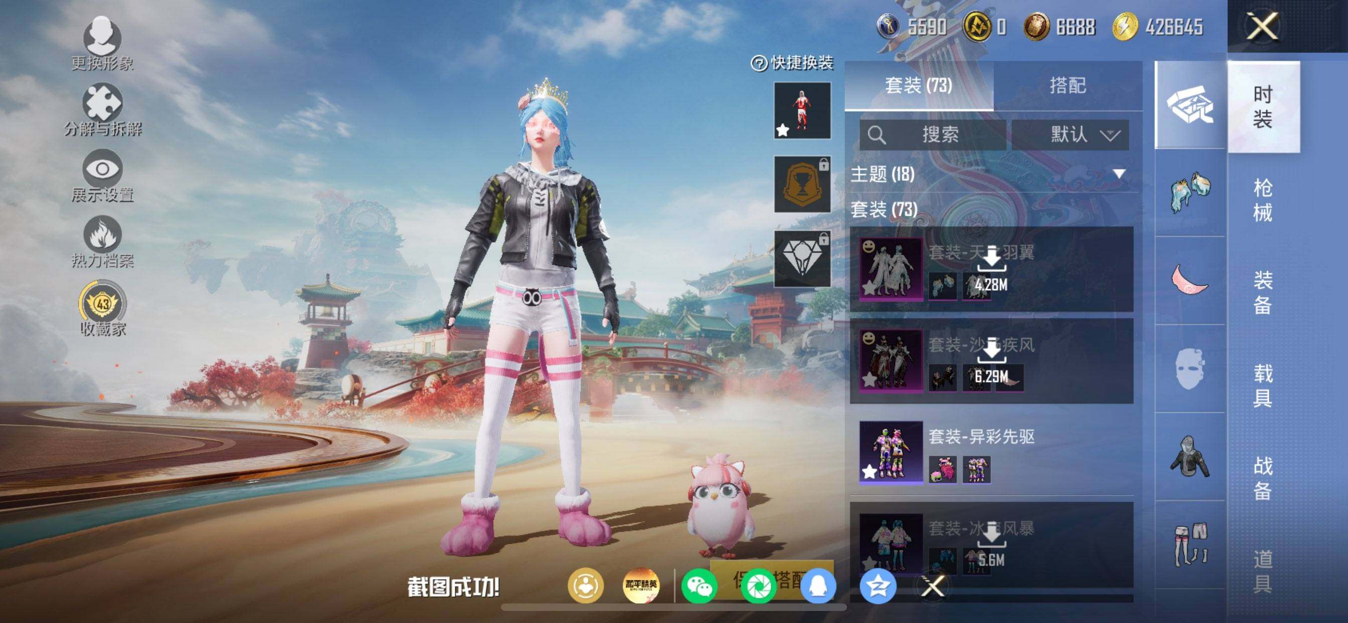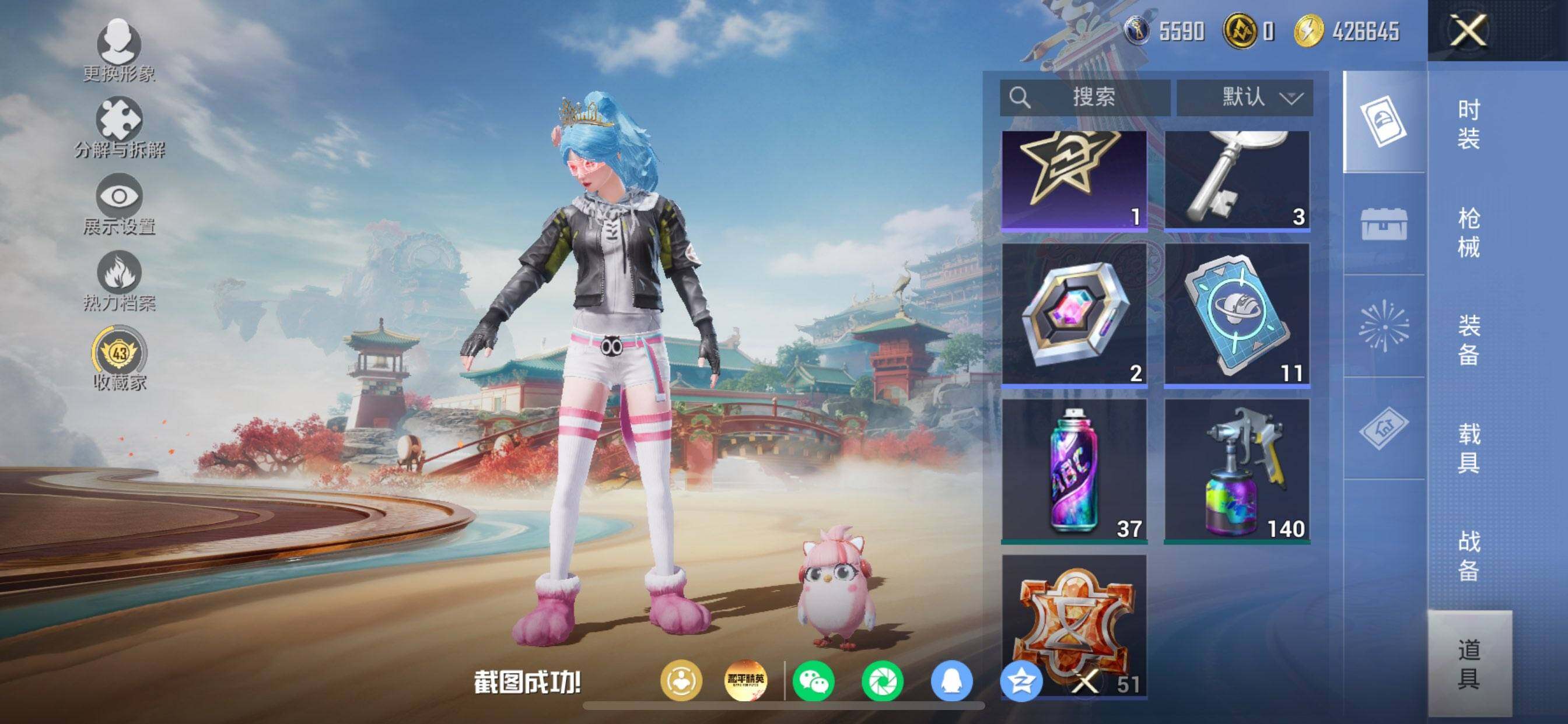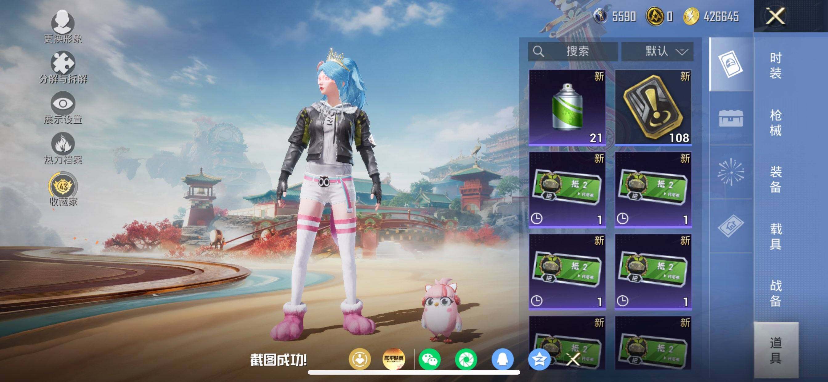 苹果 手Q-2粉装-6特效枪-0载具-2粉色飞行器-32283热力值-4王牌印记-73套装-100枪皮