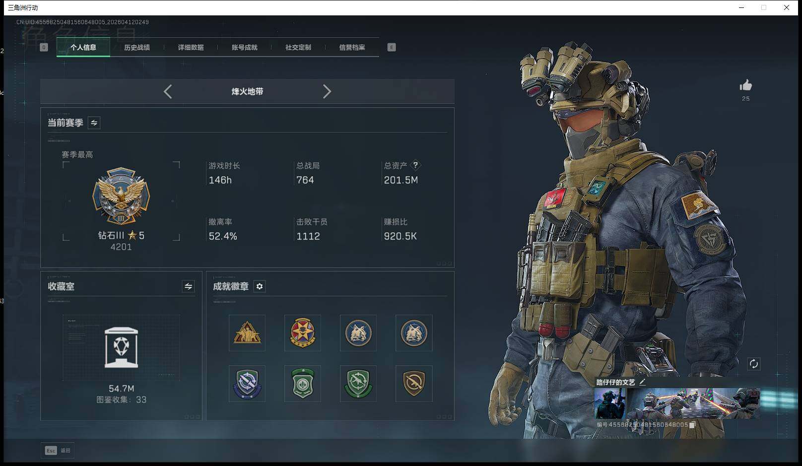 201m总资产-1994k哈夫币-60烽火等级-钻石-14战场等级-上等兵【