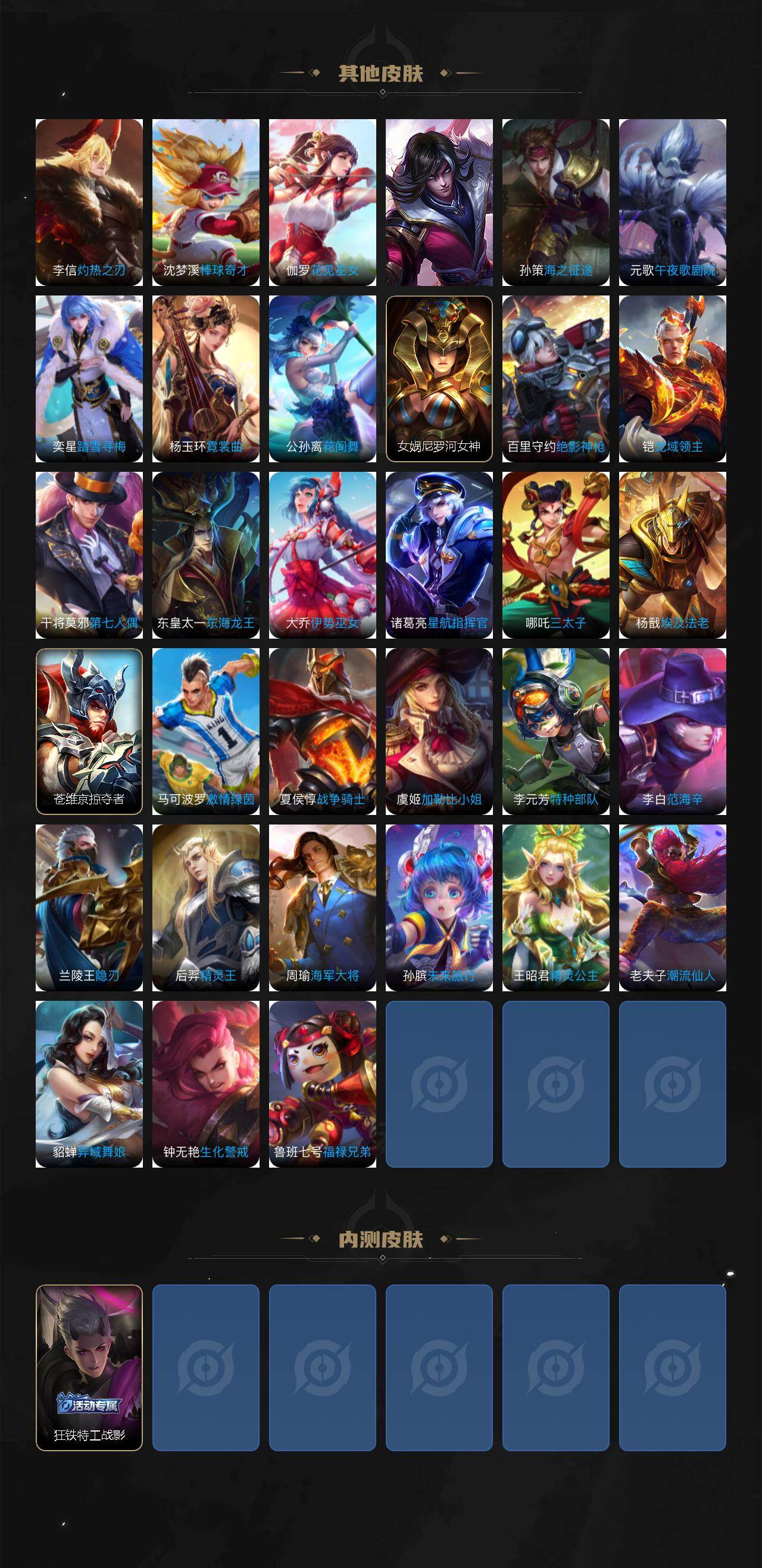 【英雄全皮】:敖隐全皮,夏洛特全皮,影全皮
