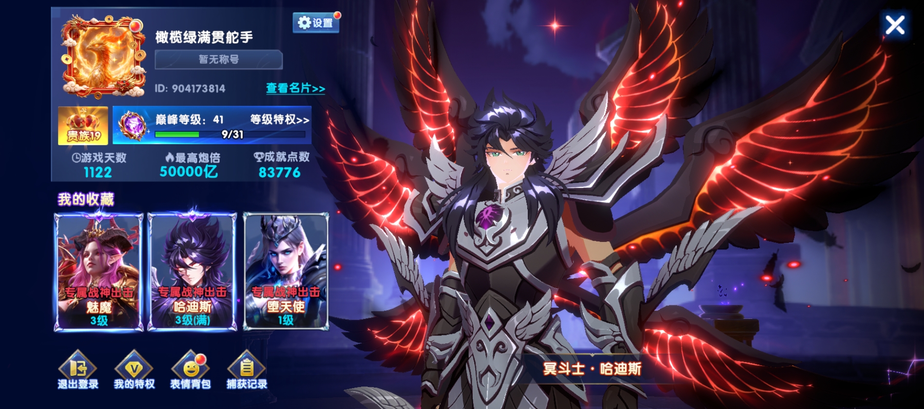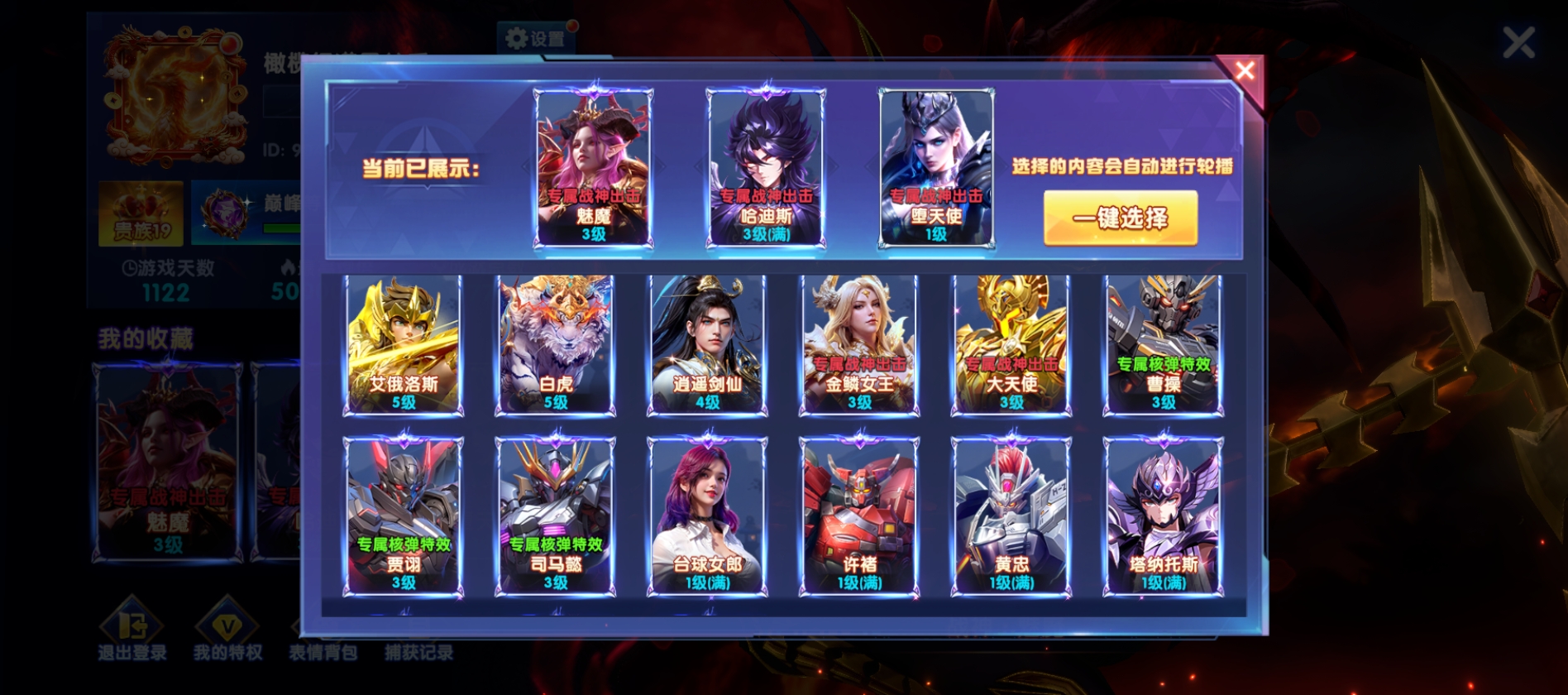 冥斗士差一个全满 最新的集卡炮台有 魅魔3级 差18个诸葛亮碎片14套