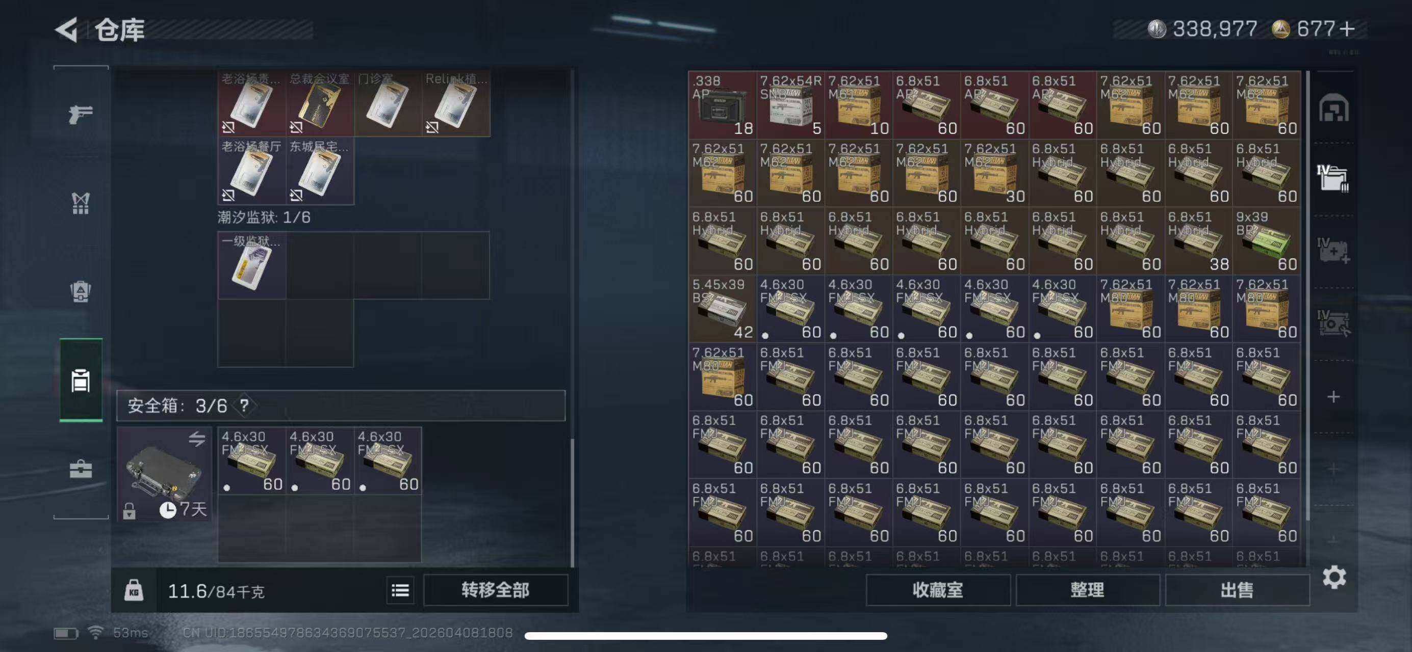【SJ1705】114m总资产-338k哈夫币-60烽火等级-黑鹰-26战场等