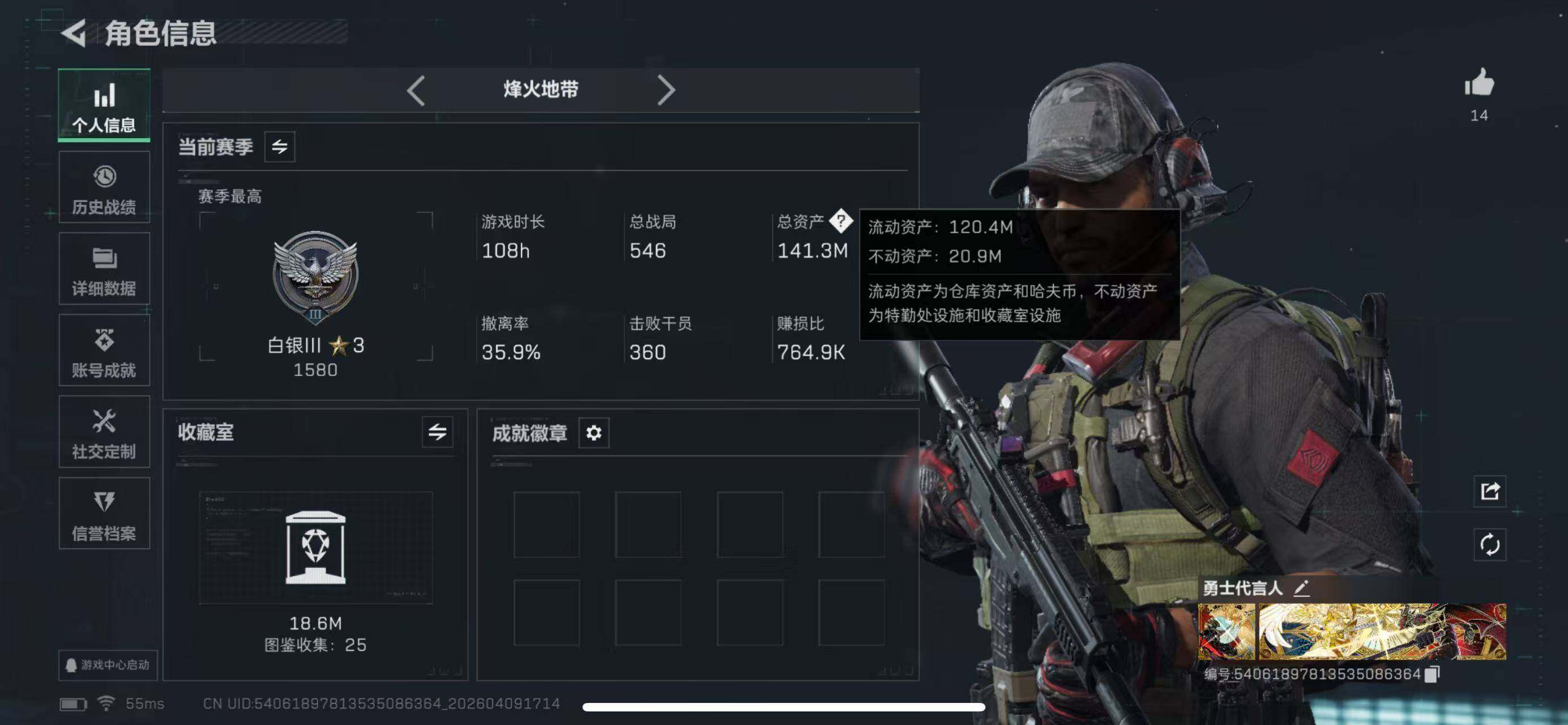 【SJ1715】142m总资产-30072k哈夫币-60烽火等级-白银-10战场等级-列兵
